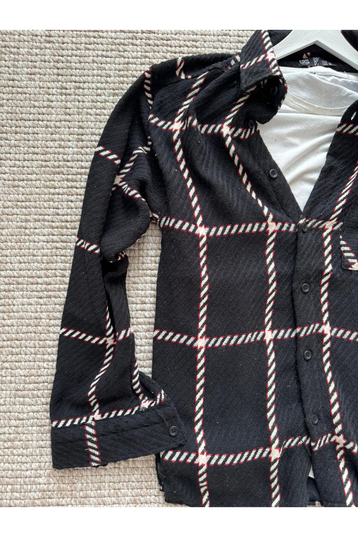 Siyah Ekru Renkli Çizgi Detaylı Dokuma Viskon Gömlek 1500059 Siyah Ekru Renkli Çizgi Detaylı Dokuma Viskon Gömlek 1500059 XL
