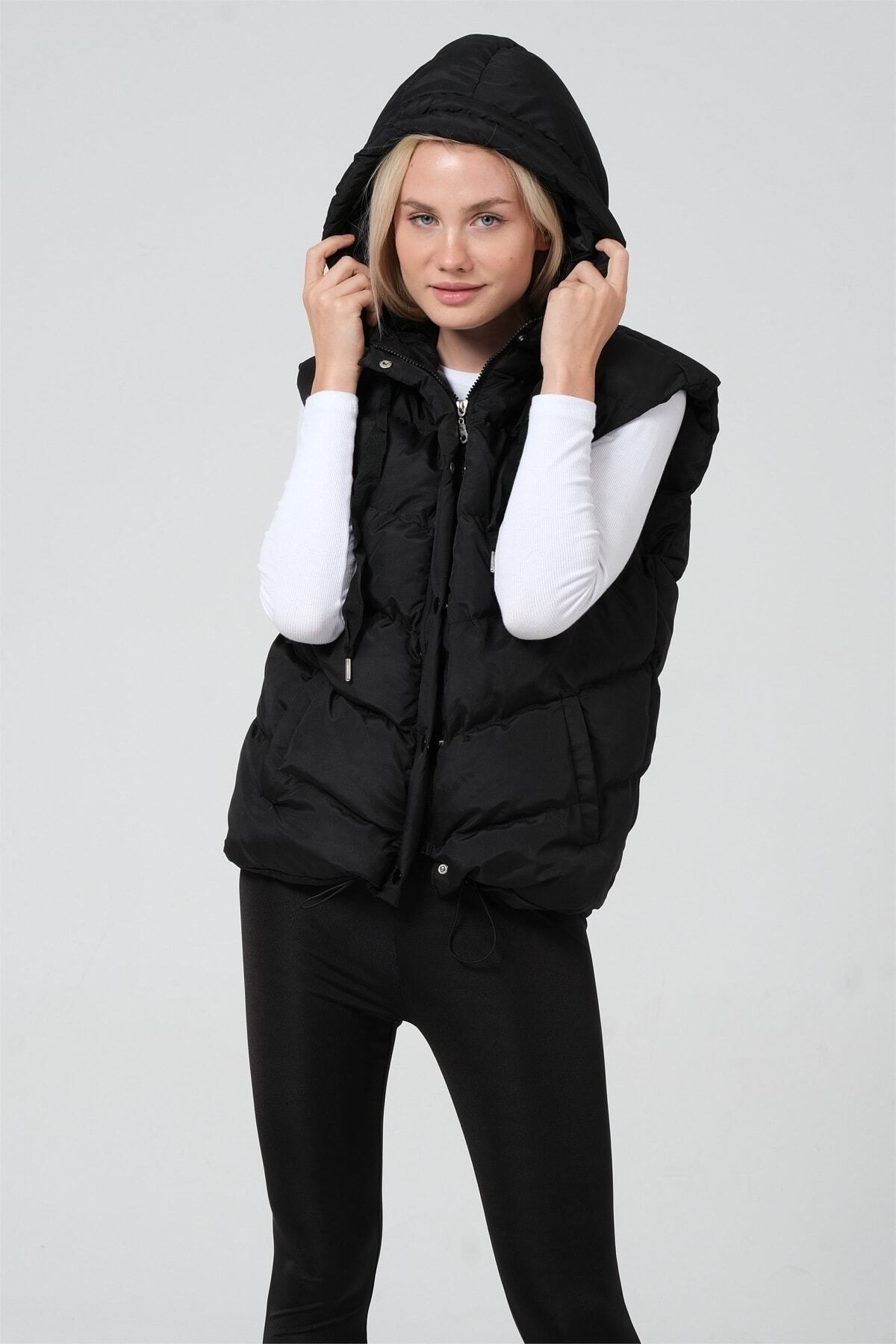 Siyah Kapüşonlu Astar Dolgulu Kısa Şisme Yelek Siyah Kapüşonlu Astar Dolgulu Kısa Şisme Yelek lk7675765 L