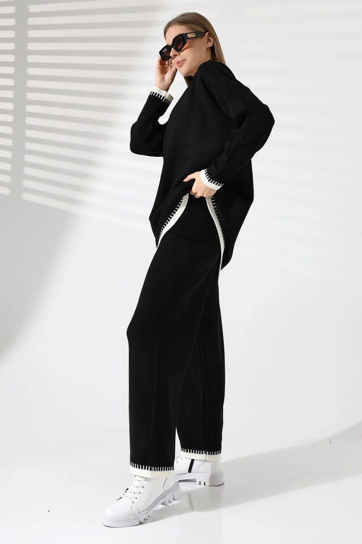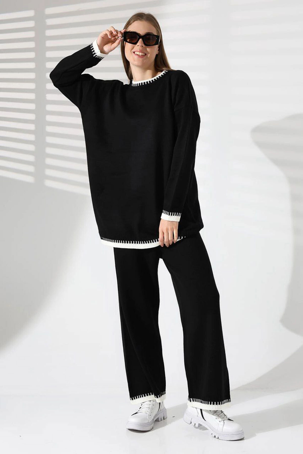 Kadın Siyah Bisiklet Yaka Çoban Dikişli Kazak Ve Palazzo Triko Alt Üst Takım Bces-241004 Kadın Siyah Bisiklet Yaka Çoban Dikişli Kazak Ve Palazzo Triko Alt Üst Takım Bces-241004 BCES-241004 Standart