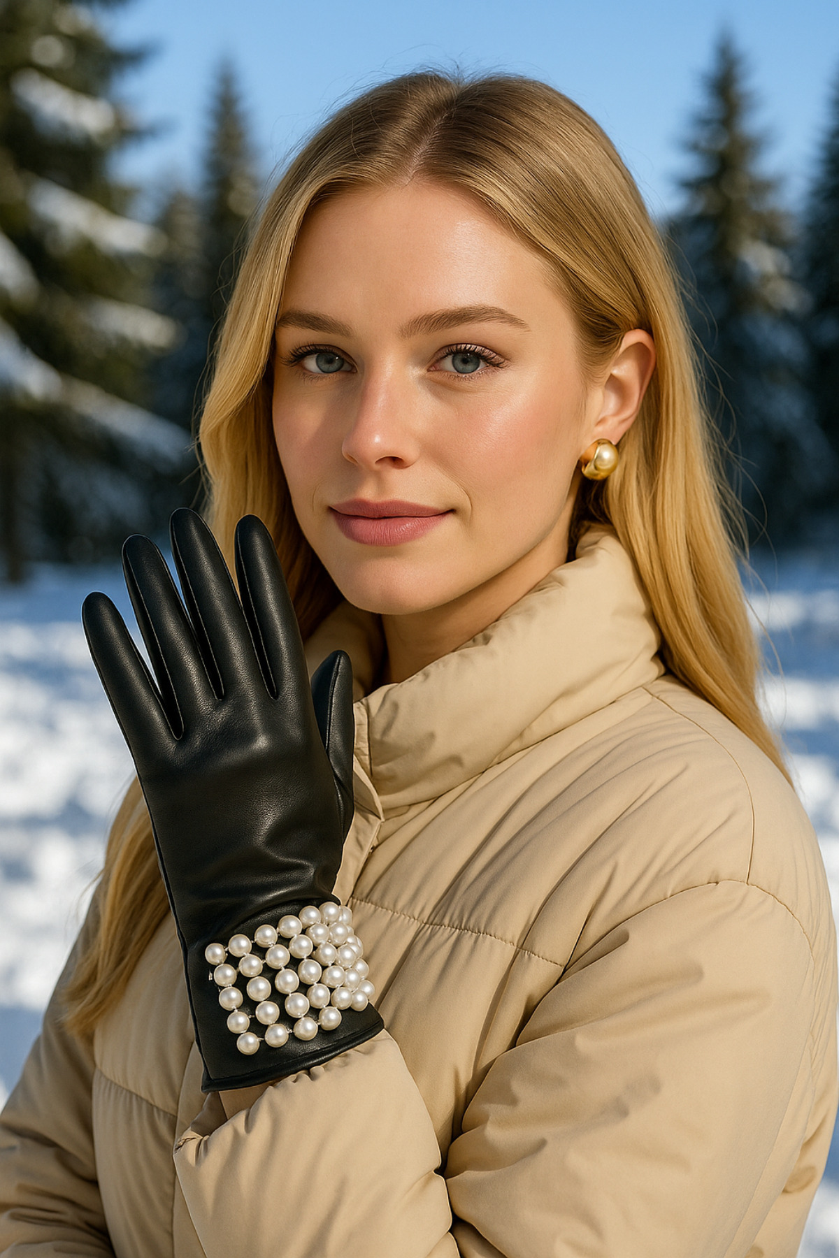 Kurdele Taşlı Siyah Deri Eldiven Kurdele Taşlı Siyah Deri Eldiven BLTELD-0288 تک سایز