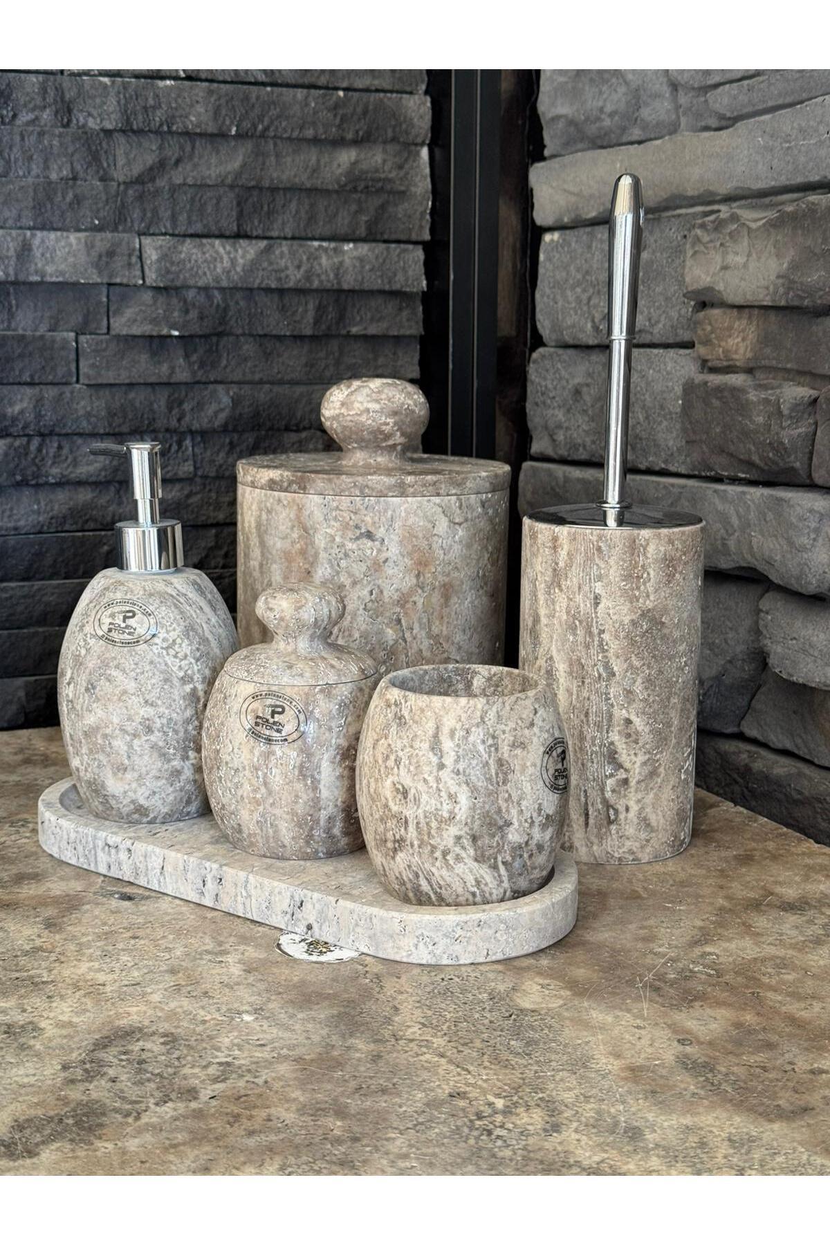 Silver - Gümüş Traverten Oval Model 6'lı Banyo Seti Kapaklar Kendinden Tutmalı Silver - Gümüş Traverten Oval Model 6'lı Banyo Seti Kapaklar Kendinden Tutmalı PLN905 تک سایز