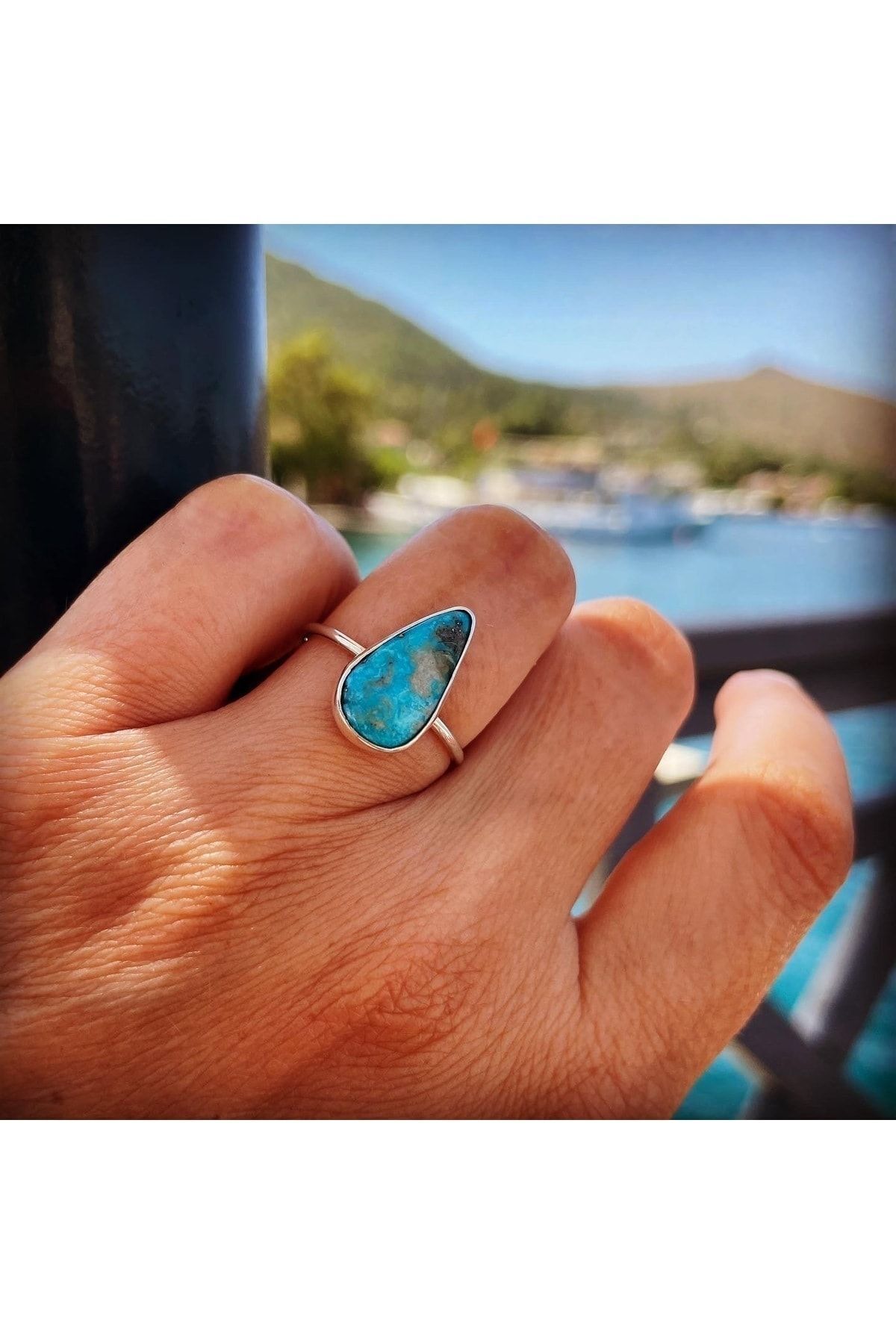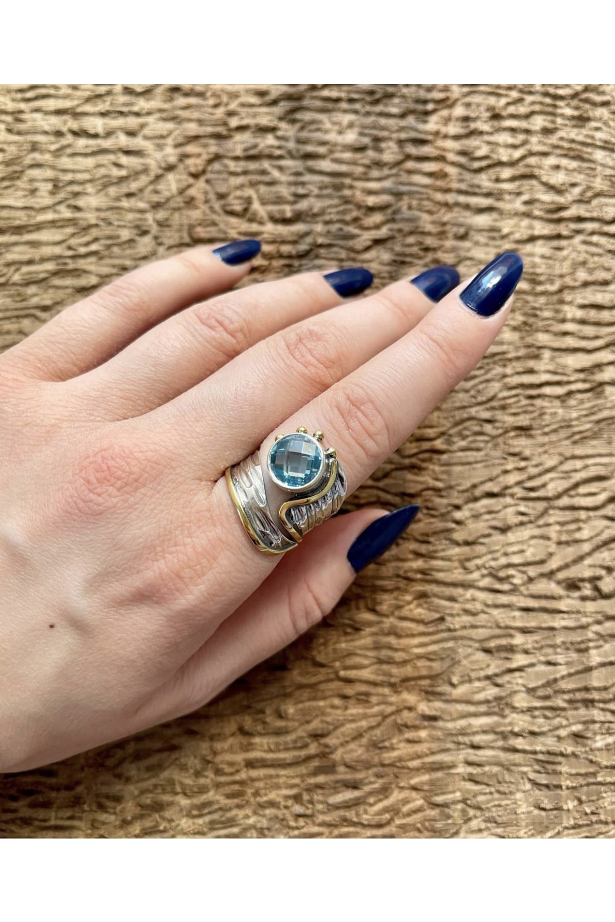 Gümüş Akuamarin Taşlı El İşi Yüzük Gümüş Akuamarin Taşlı El İşi Yüzük AS-Y314 17