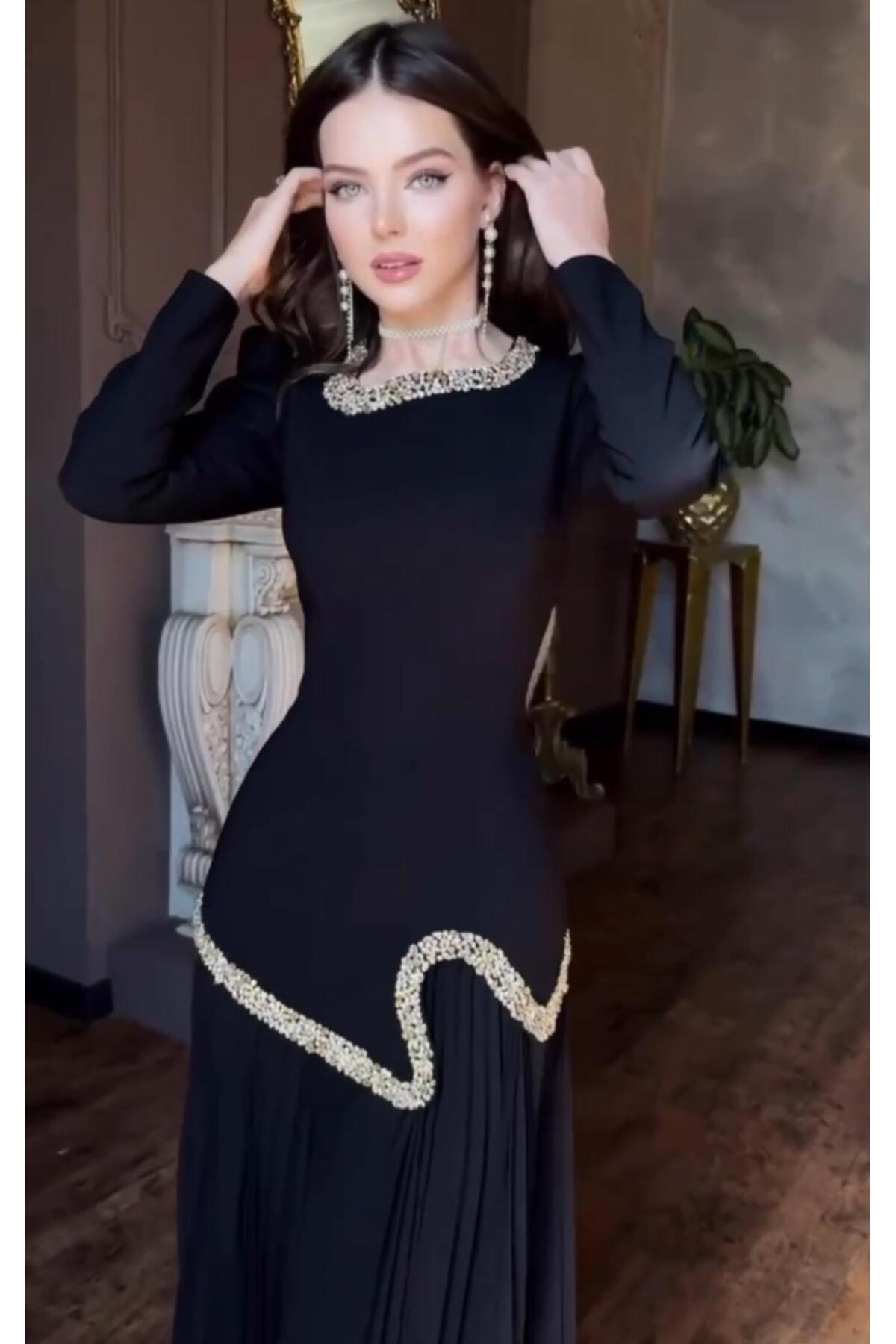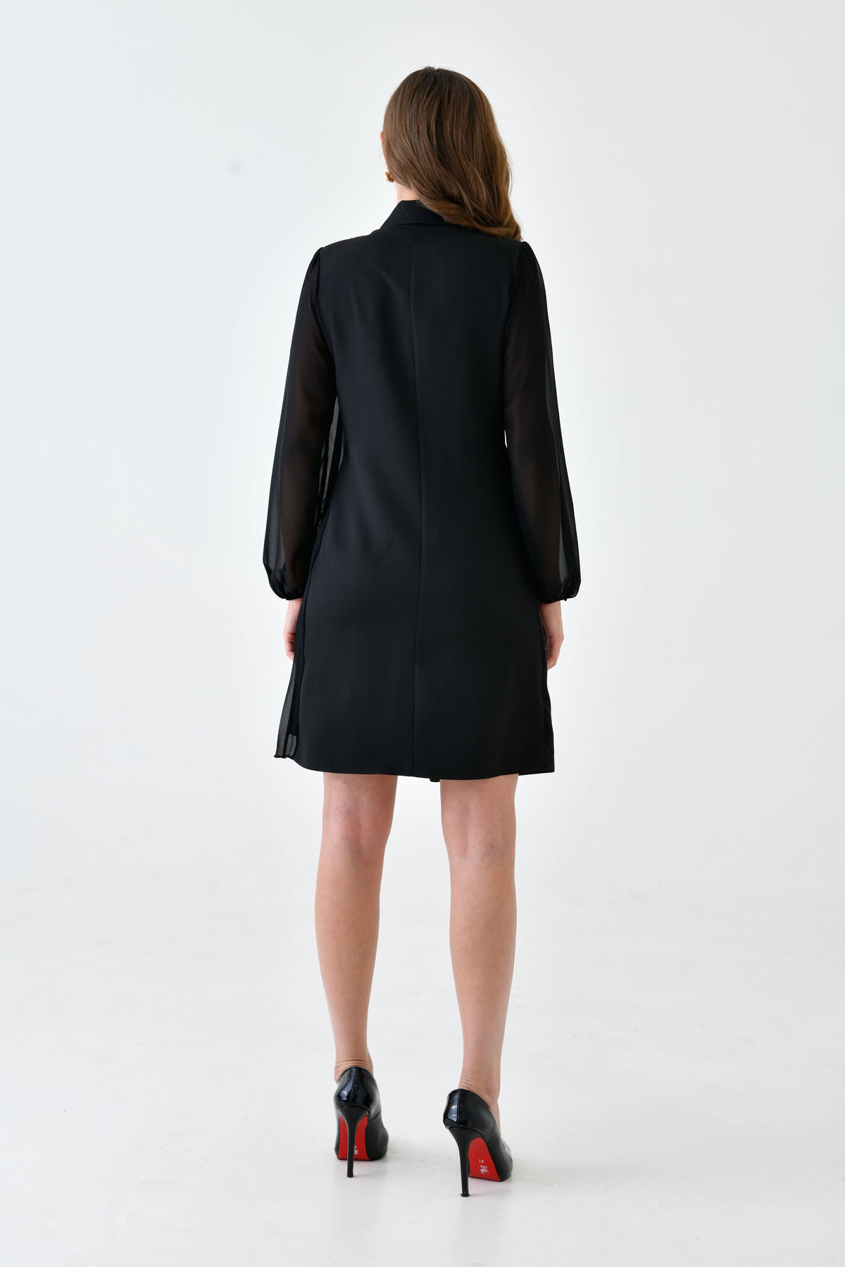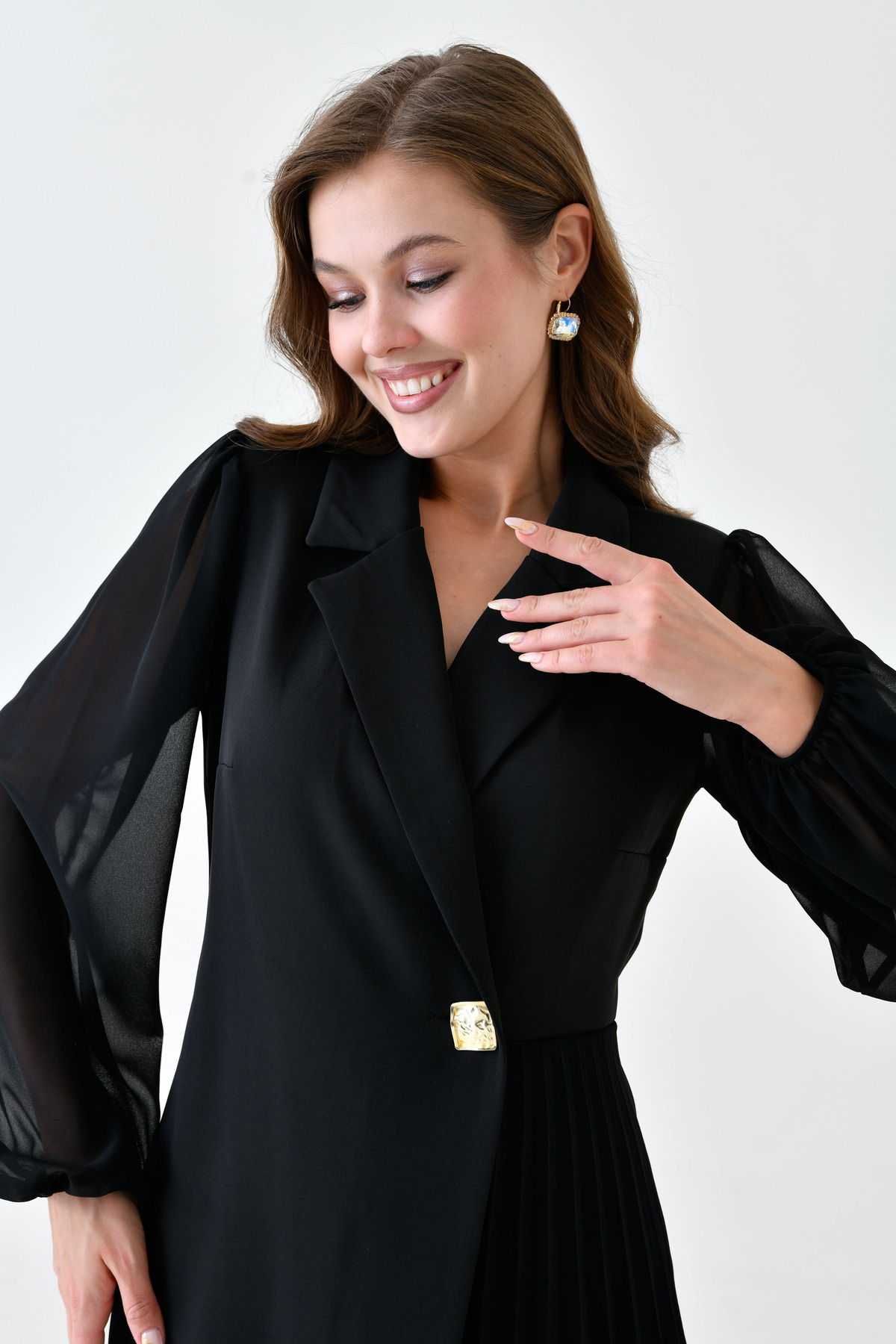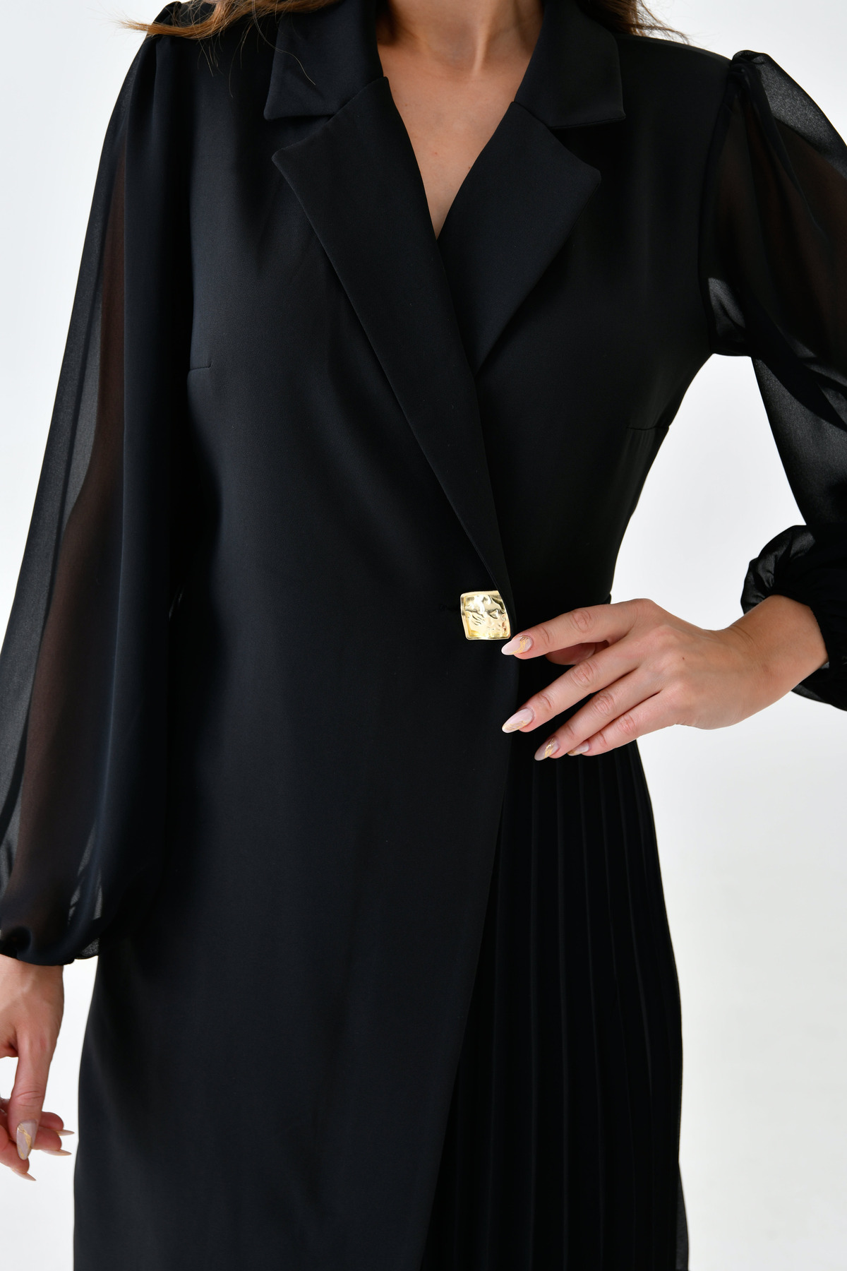 Kadın Piliseli Detaylı Kruvaze Ceket Yaka Kolları Tül Anvelop Kesim Siyah Ofis Elbisesi 24K2169 Kadın Piliseli Detaylı Kruvaze Ceket Yaka Kolları Tül Anvelop Kesim Siyah Ofis Elbisesi 24K2169 BS-STP-ELB-24K2169 42