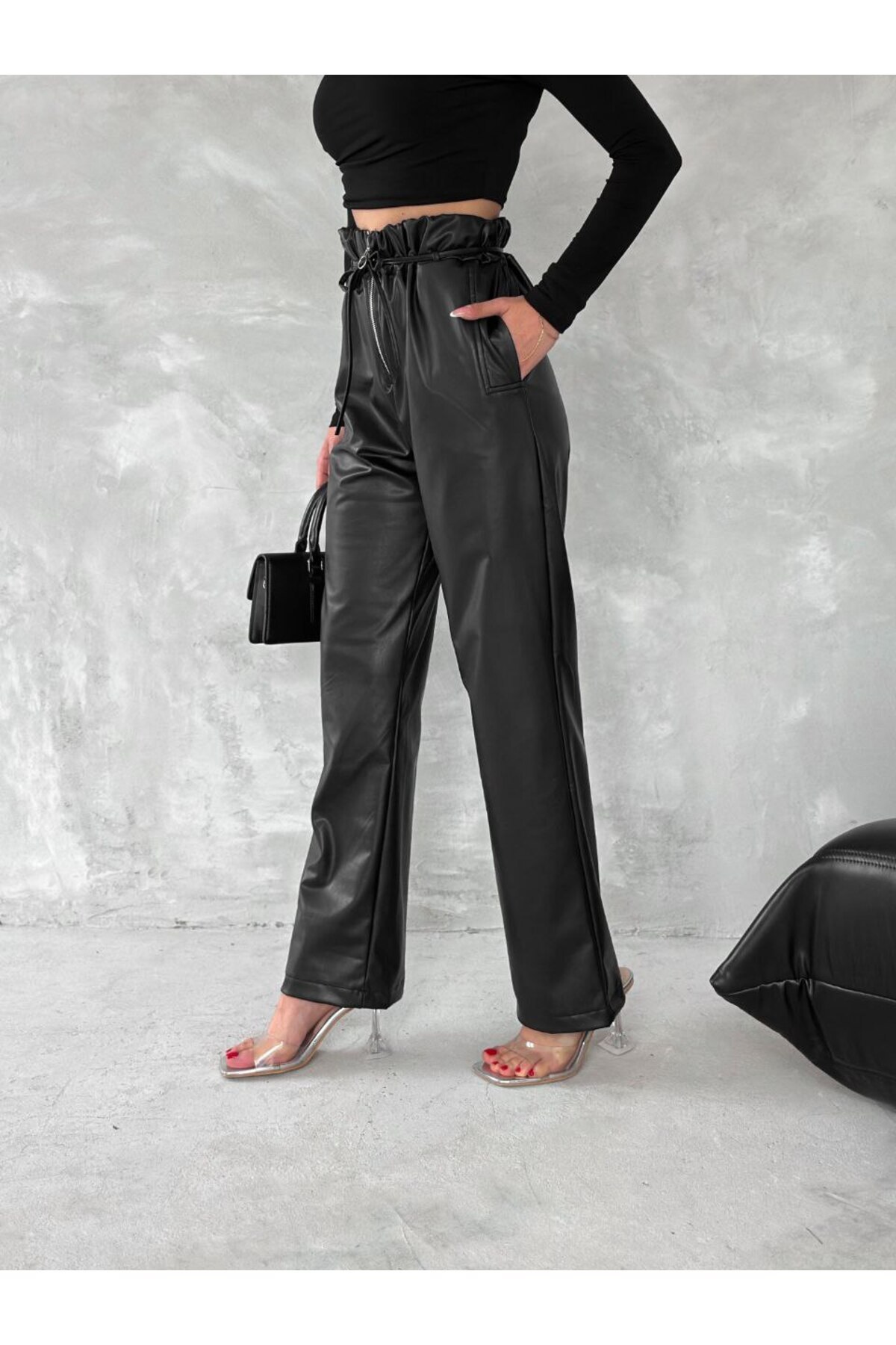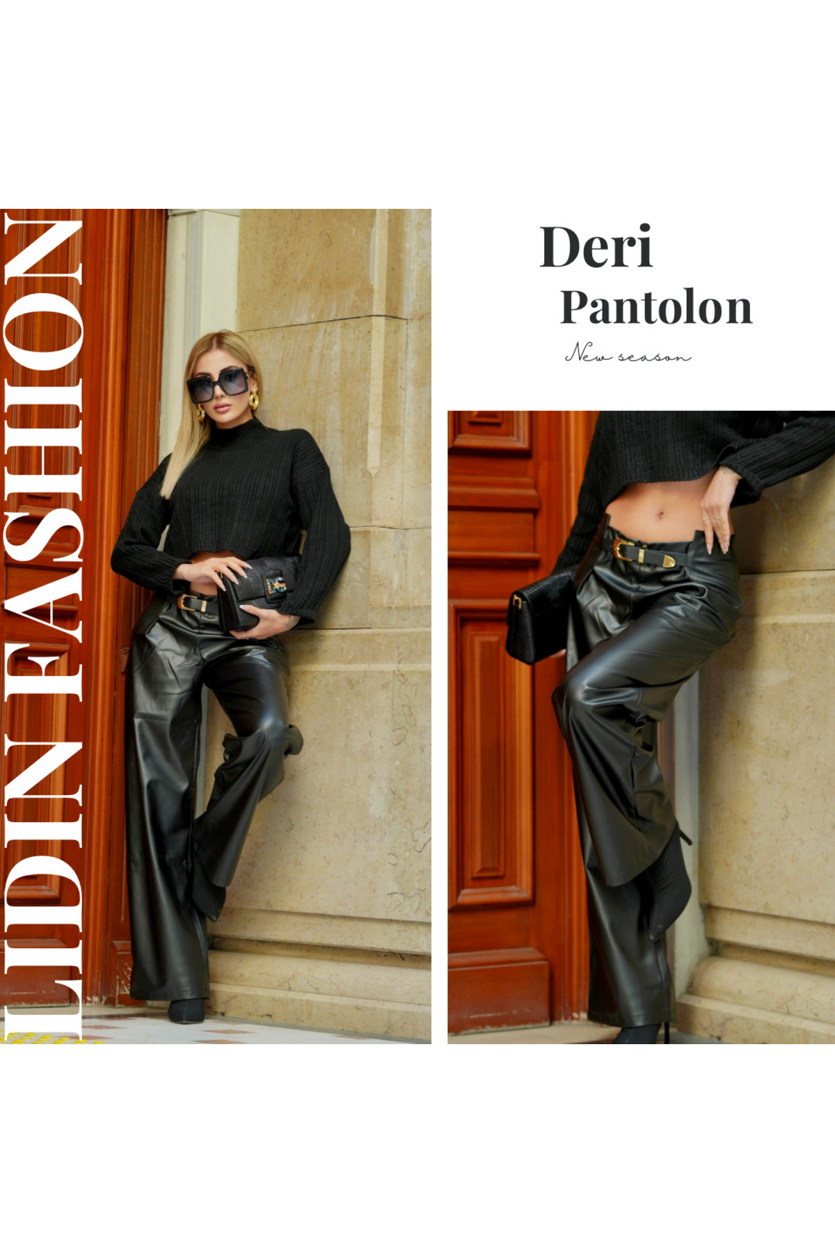 Beli Büzgü Detaylı Fermuarlı Belden Bağlamalı Likralı Palazzo Deri Pantolon Beli Büzgü Detaylı Fermuarlı Belden Bağlamalı Likralı Palazzo Deri Pantolon TLL111 XL