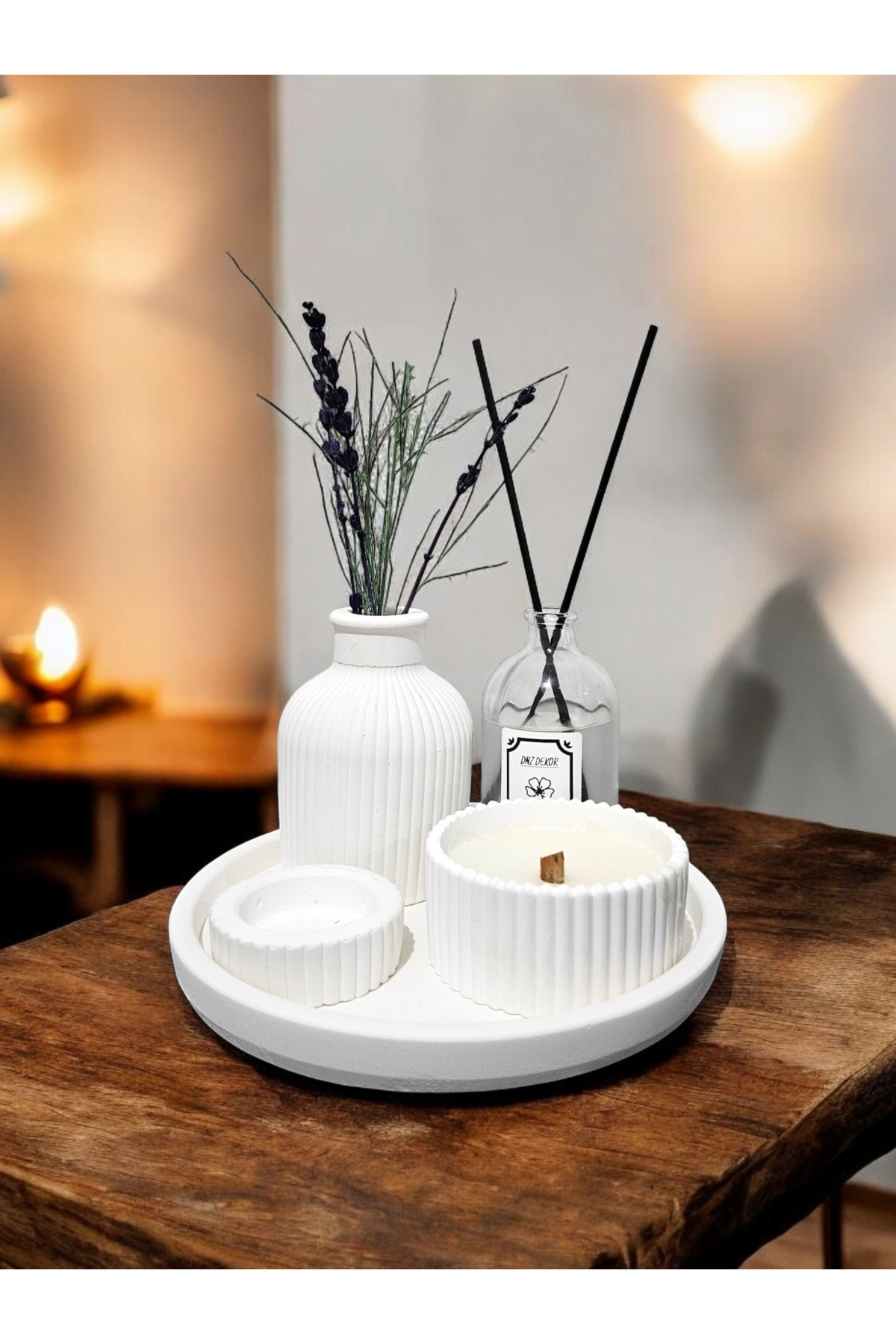 Dekoratif Çizgili Vazo Fresh Soft Koku Mumlu Set Dekoratif Çizgili Vazo Fresh Soft Koku Mumlu Set KOKULUSET تک سایز