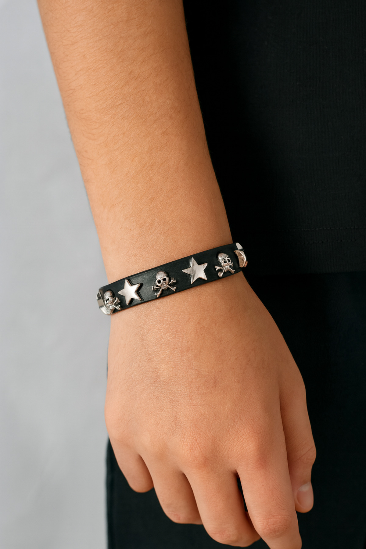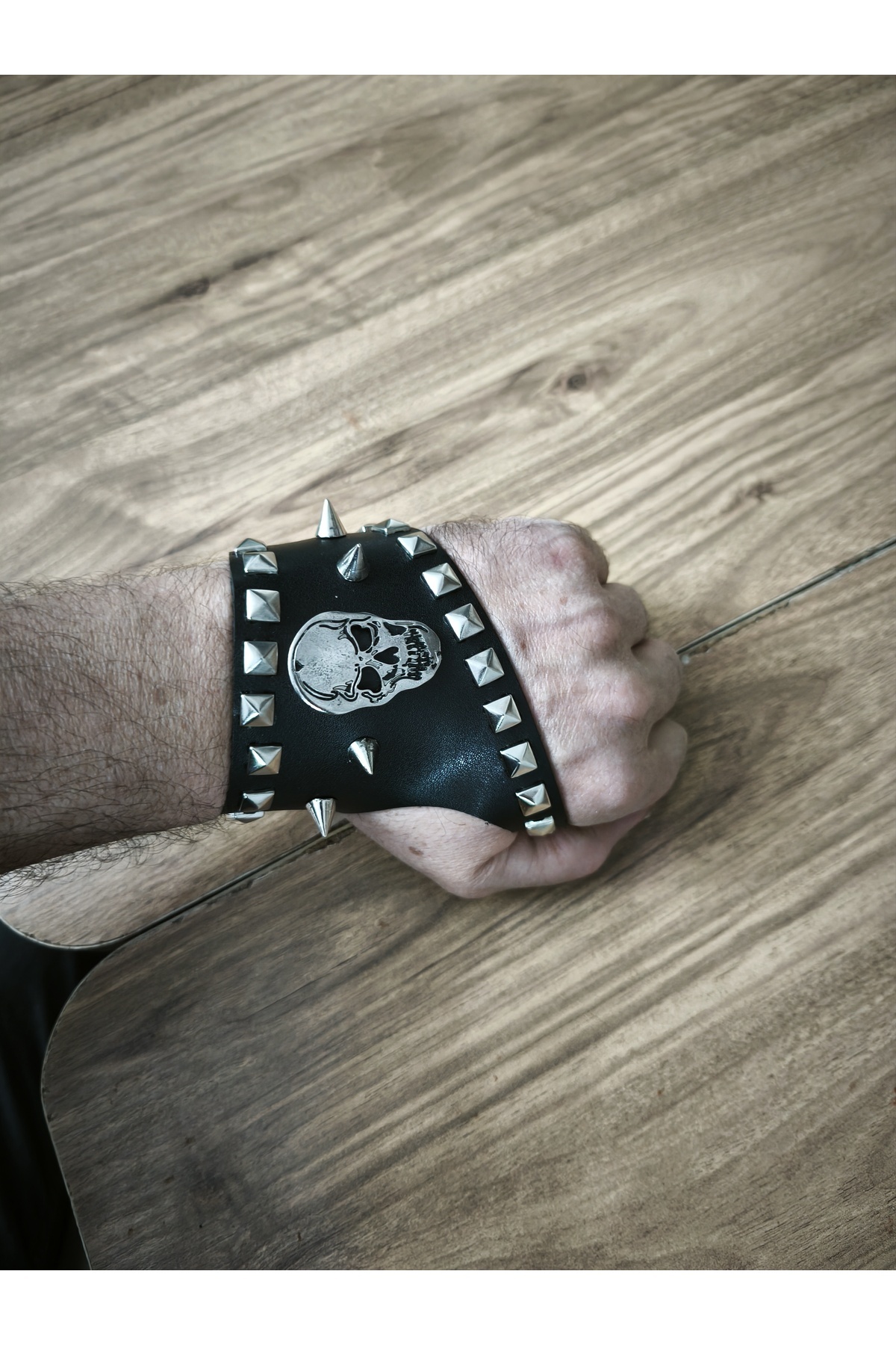 4.cm kuru kafa çivili piramitli metalci Bileklik 4.cm kuru kafa çivili piramitli metalci Bileklik 3005 18-20