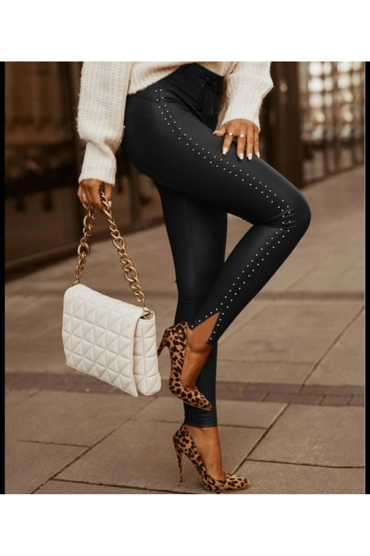 Kadın Siyah Kuşgözlü Bağcıklı Deri Tayt Kadın Siyah Kuşgözlü Bağcıklı Deri Tayt MSP1694 XL