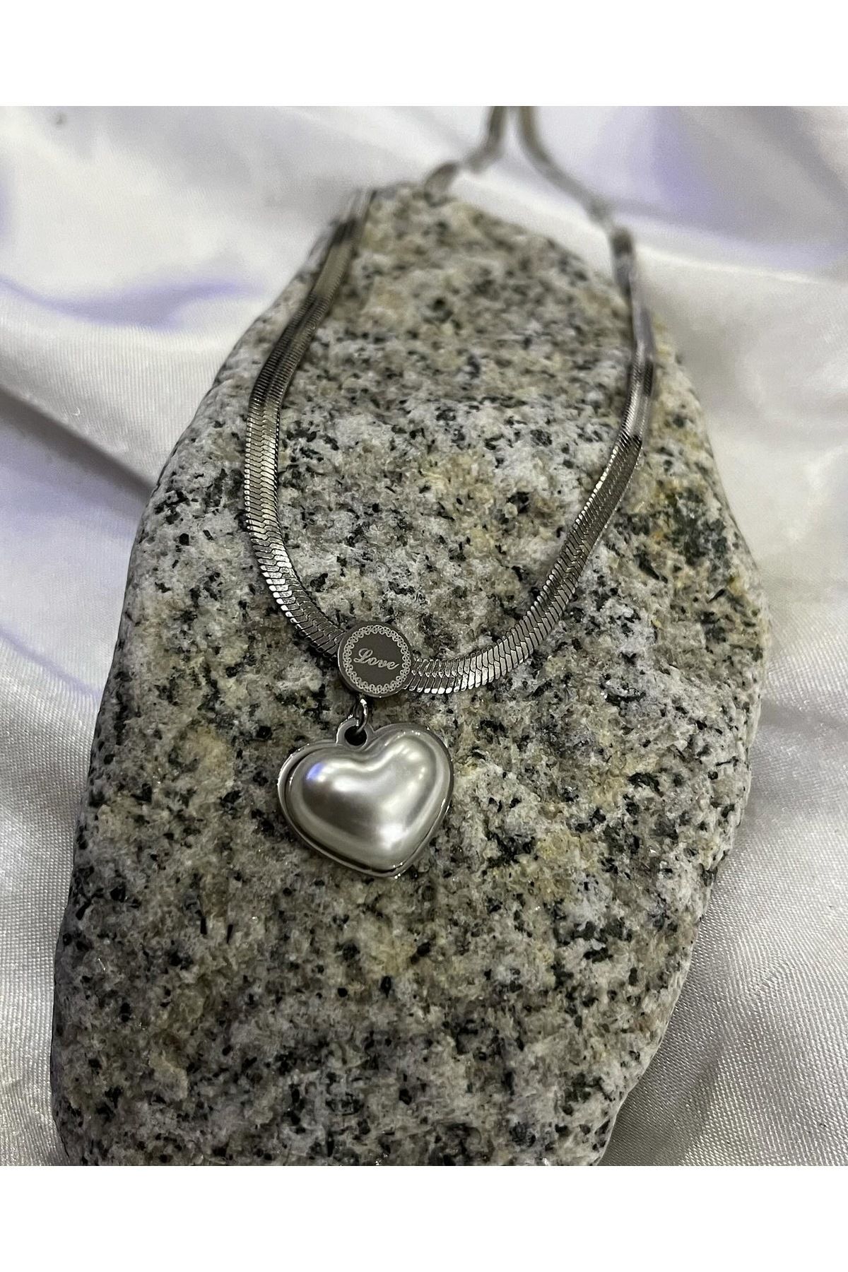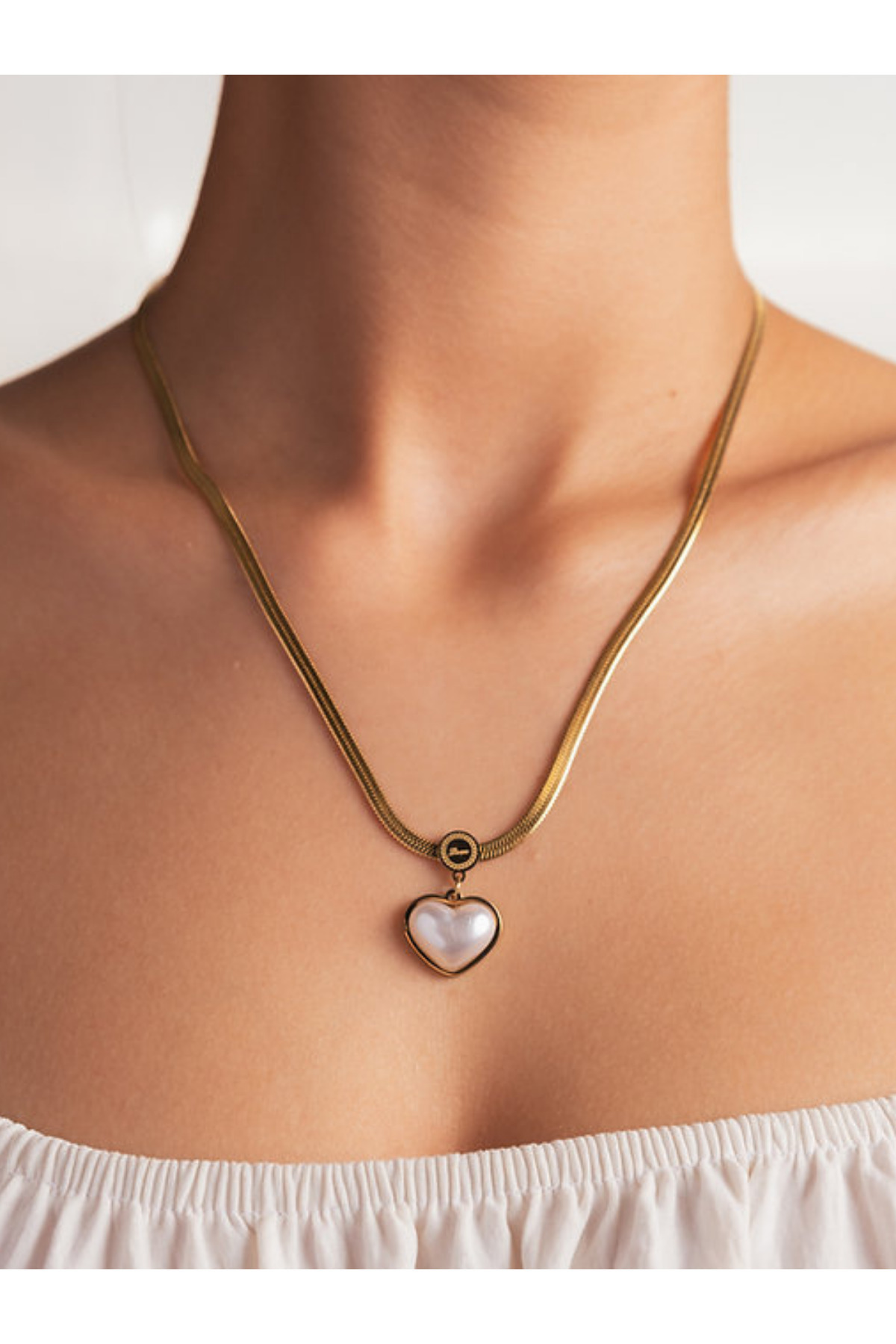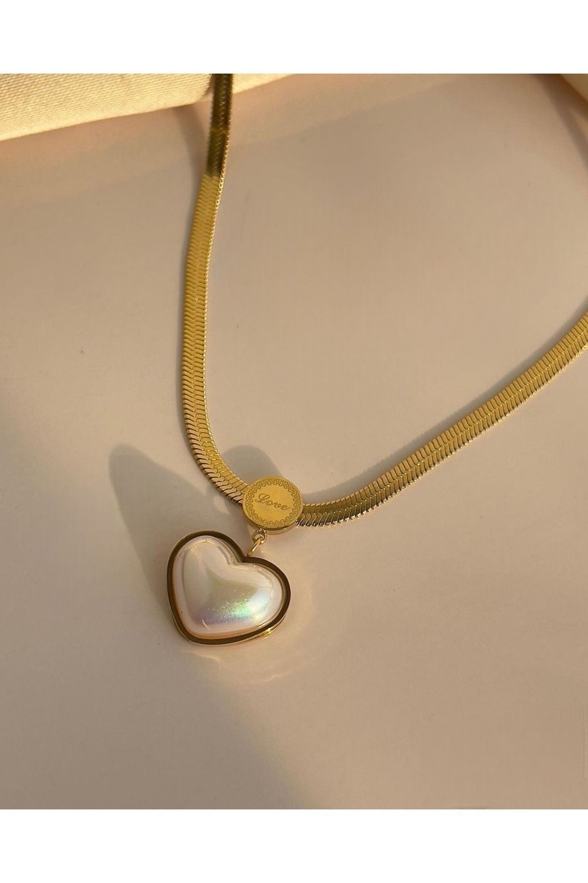 Bombeli Inci Kalpli Italyan Zincir Kolye | Kararmaz Çelik, Altın Renk, 45 Cm Bombeli Inci Kalpli Italyan Zincir Kolye | Kararmaz Çelik, Altın Renk, 45 Cm DesignedForYou854 45 cm