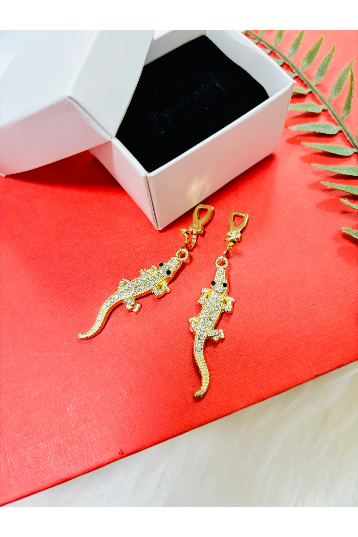Timsah yılan kadın klipsli küpe -deliksiz kulak küpesi Timsah yılan kadın klipsli küpe -deliksiz kulak küpesi timsah L