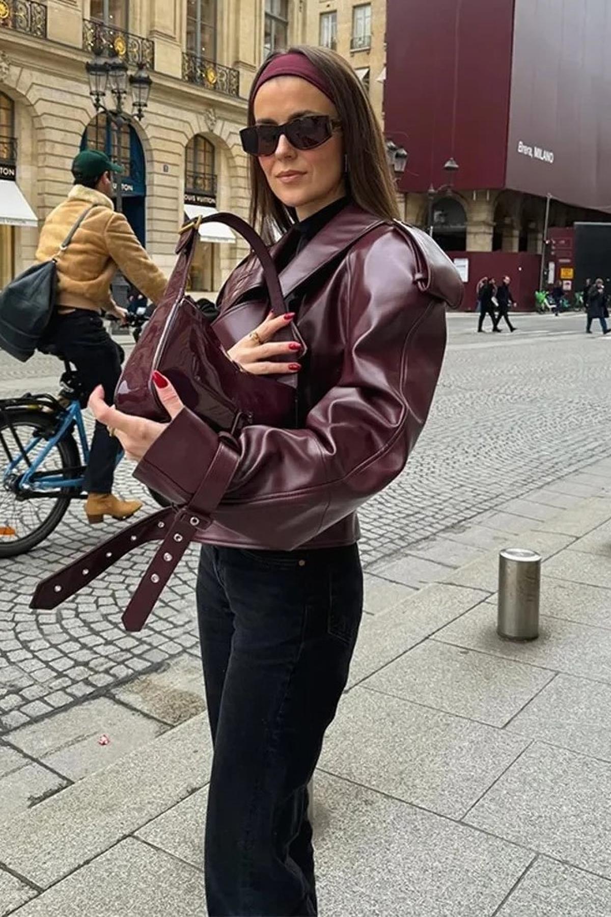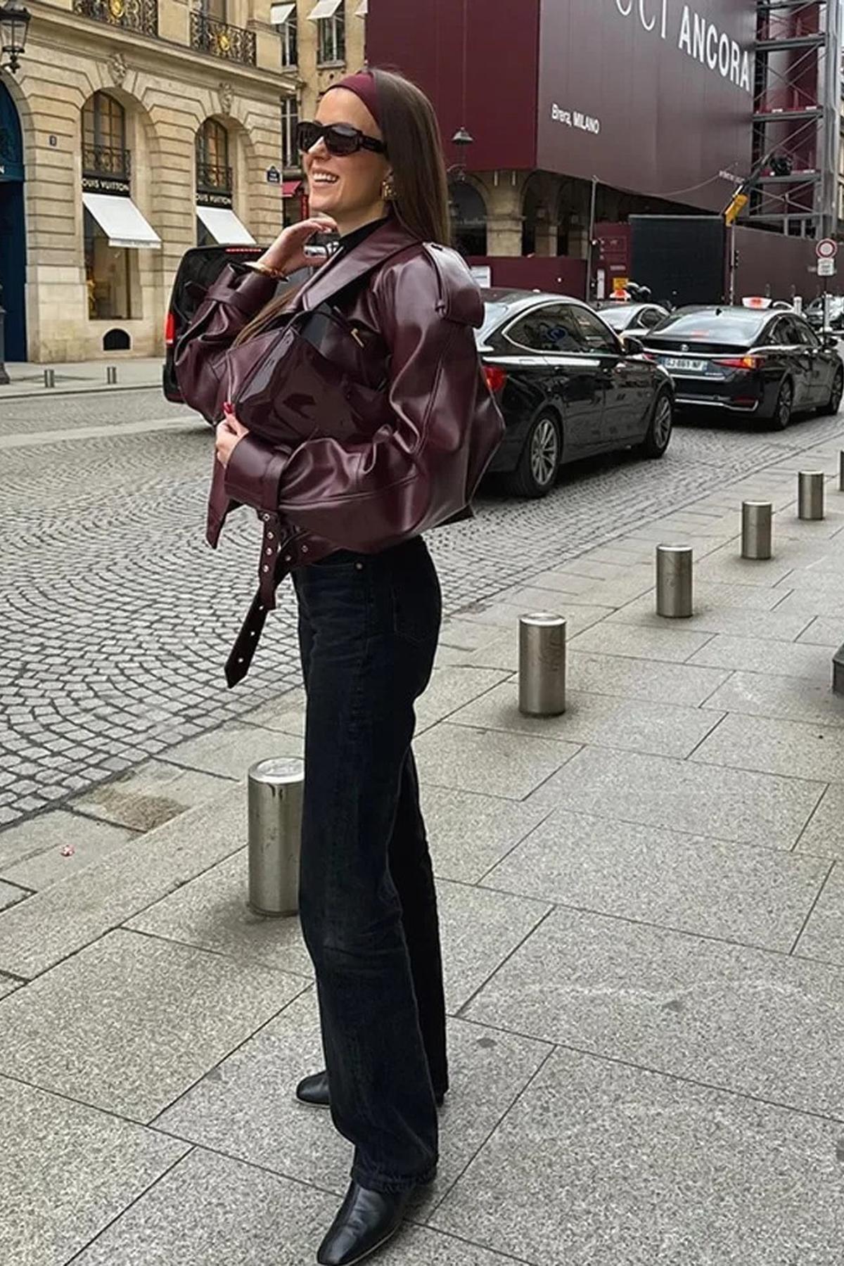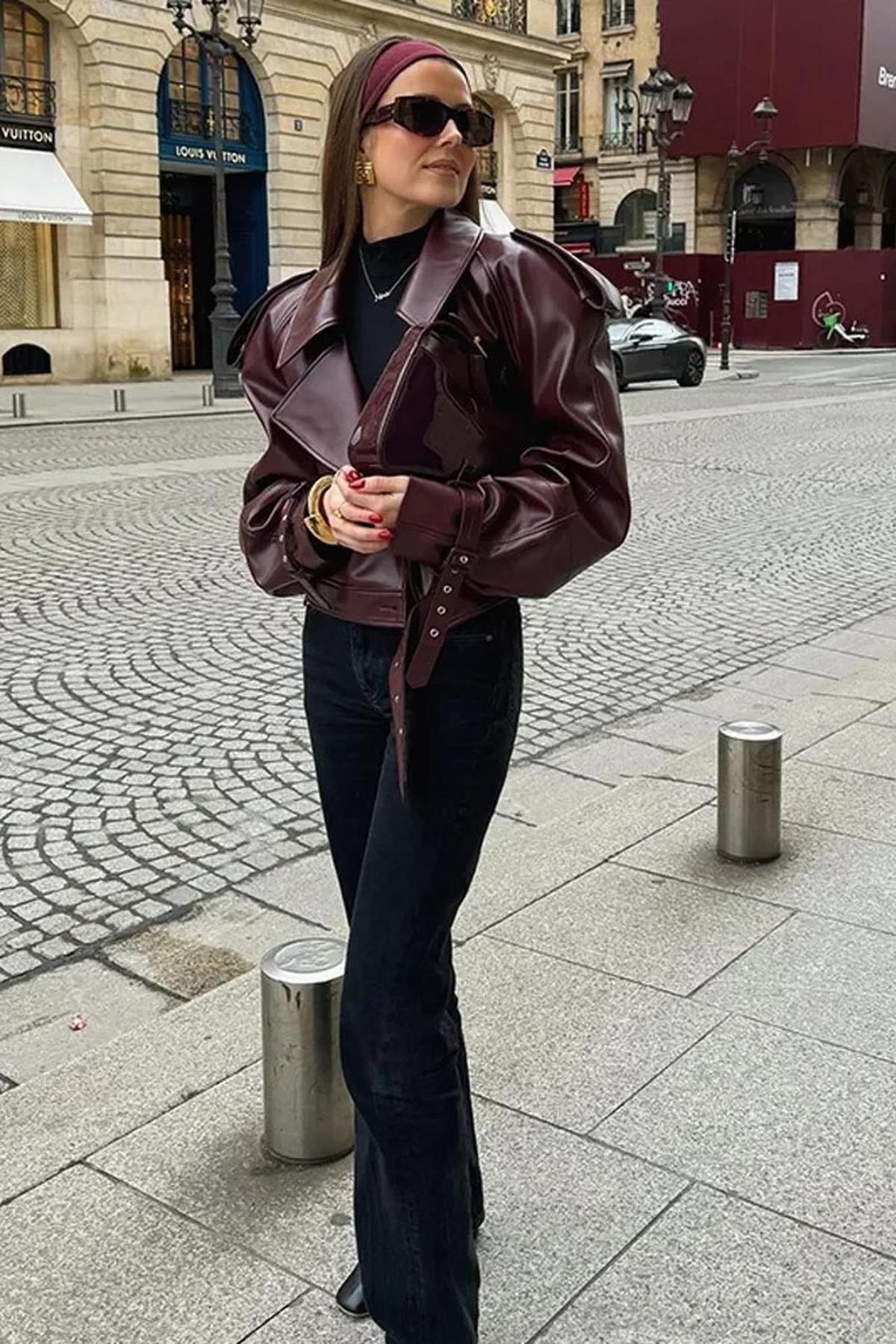 Vintage Kadın Bordo Deri Biker Ceket Vintage Kadın Bordo Deri Biker Ceket Yerdeks-Vatkalı3 L