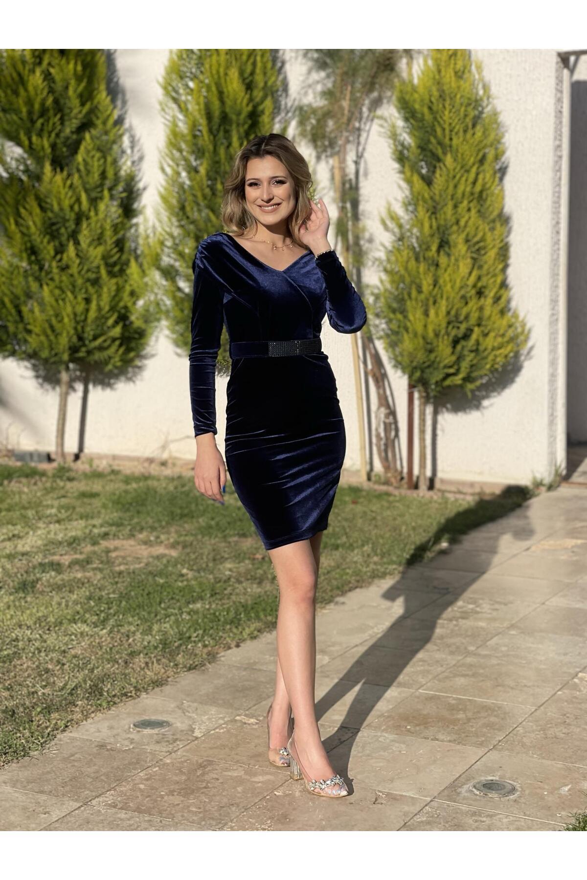saks simli kadife kumaş kruvaze yaka abiye elbise saks simli kadife kumaş kruvaze yaka abiye elbise 2003 L