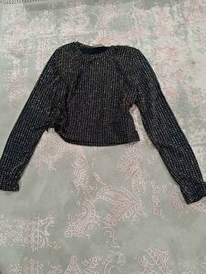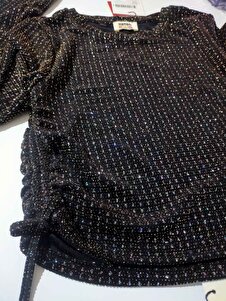 Bluz Uzun Kollu Bisiklet Yaka Parlak Detaylı Bluz Uzun Kollu Bisiklet Yaka Parlak Detaylı 5WKG60068AK 13-14 Yaş