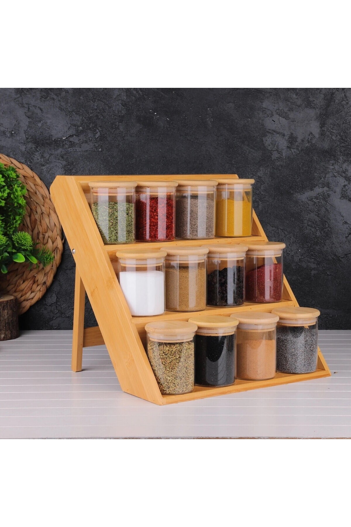 3 KATLI BAMBU BAHARAT RAFI 12Lİ BAMBU BAHARATLIK SET 200ML 3 KATLI BAMBU BAHARAT RAFI 12Lİ BAMBU BAHARATLIK SET 200ML Yeni Seri تک سایز
