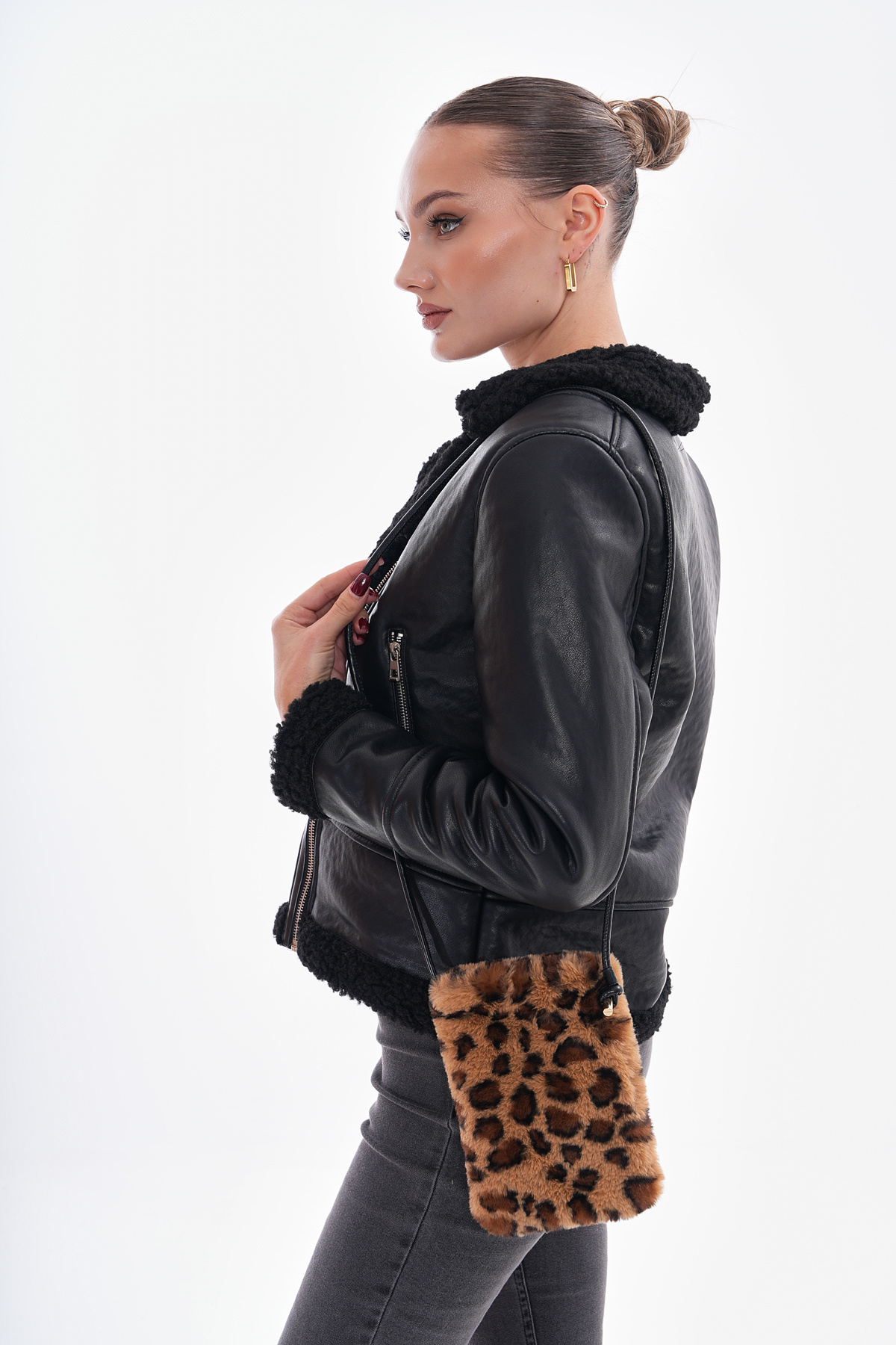 NWC-007 Leopar Desenli Kahve Mini Peluş Çanta NWC-007 Leopar Desenli Kahve Mini Peluş Çanta NWÇANTA تک سایز