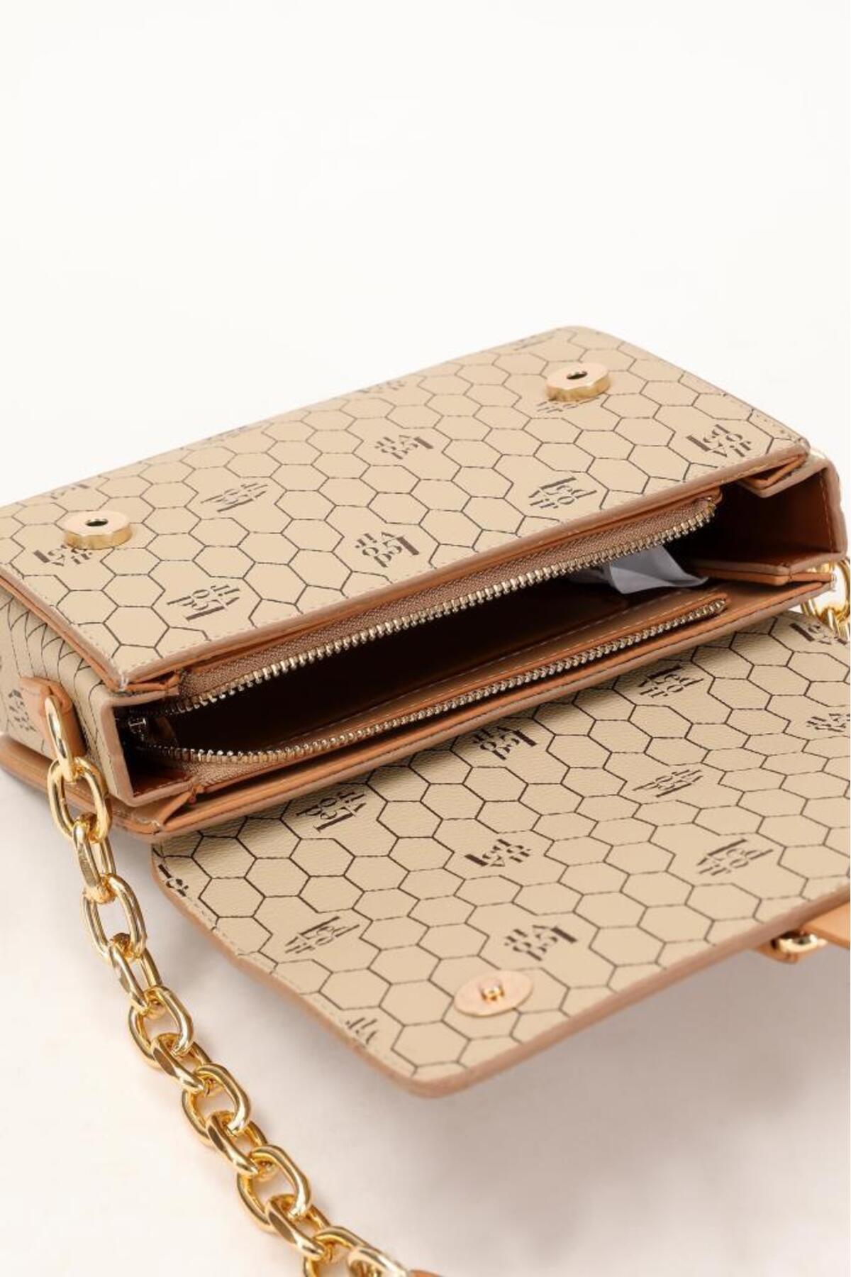 930088 Vizon Petek Baskılı Omuz Çantası 930088 Vizon Petek Baskılı Omuz Çantası Standart