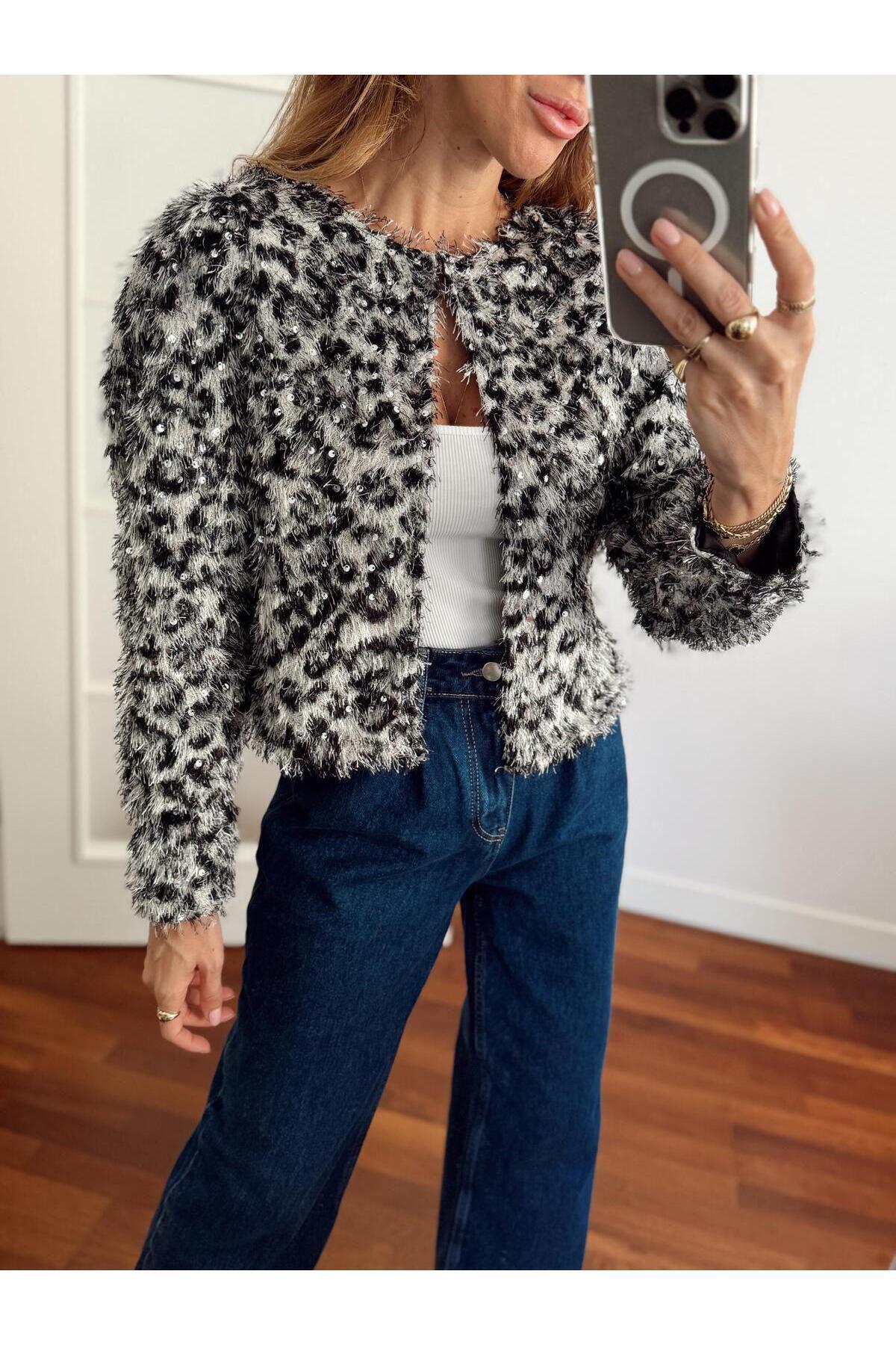 Kadın Leopar Tüylü Pul Silver Ceket 1400 Kadın Leopar Tüylü Pul Silver Ceket 1400 25KCAR-150 L