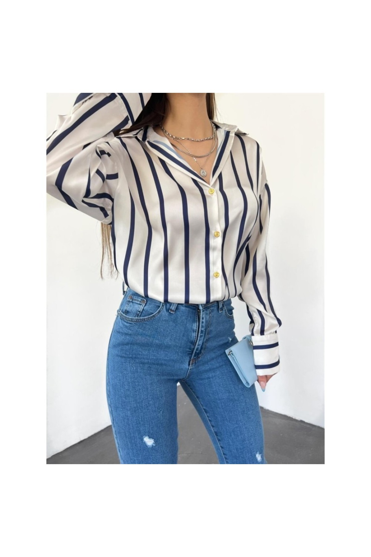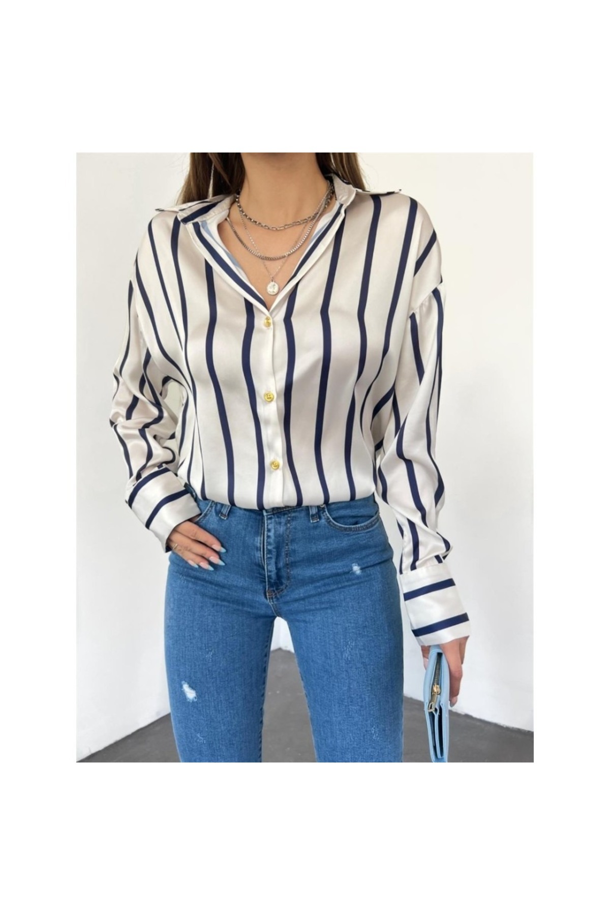 Marka Çizgili Saten Gömlek Marka Çizgili Saten Gömlek mlszra1