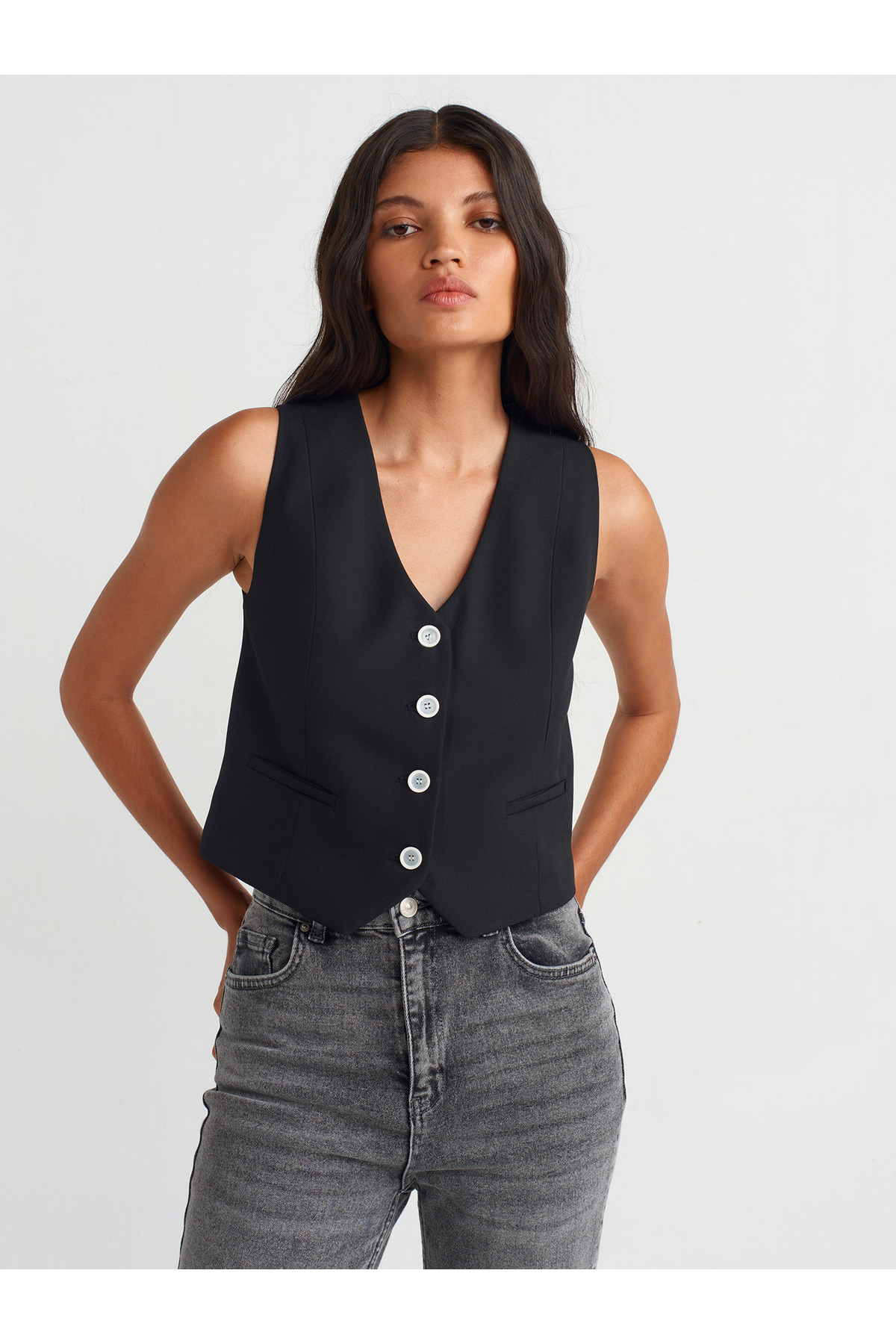60562 Kısa Özel Dikim Yelek-Koyu Gri 60562 Kısa Özel Dikim Yelek-Koyu Gri 101A60562 40