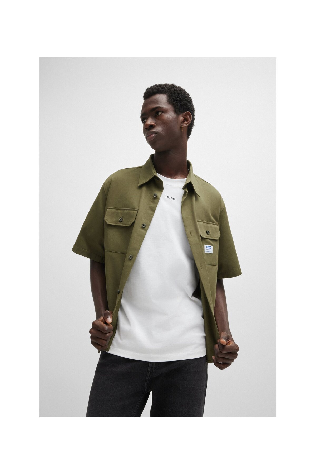 Baskılı pamuklu poplin dar kesim gömlek Baskılı pamuklu poplin dar kesim gömlek 50527399 XL