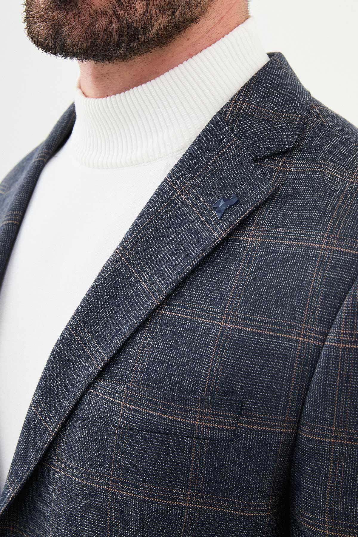 Ekoseli Slim Fit Mono Yaka Klasik Erkek Ceket Lacivert - 41405.24K Ekoseli Slim Fit Mono Yaka Klasik Erkek Ceket Lacivert - 41405.24K 56