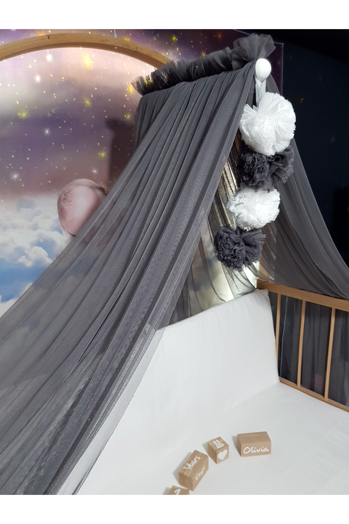 Bebek Lüks Cibinlik Takımı - Koyu Gri ve Beyaz Dört Ponponlu - 6 Metre Likra Tül (Aparat Dahil) Bebek Lüks Cibinlik Takımı - Koyu Gri ve Beyaz Dört Ponponlu - 6 Metre Likra Tül (Aparat Dahil) LÜKSCİB-RENK 180 x 600