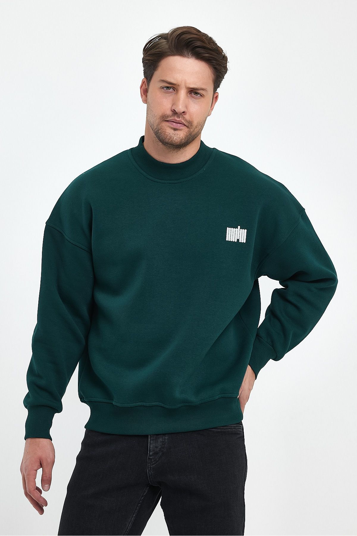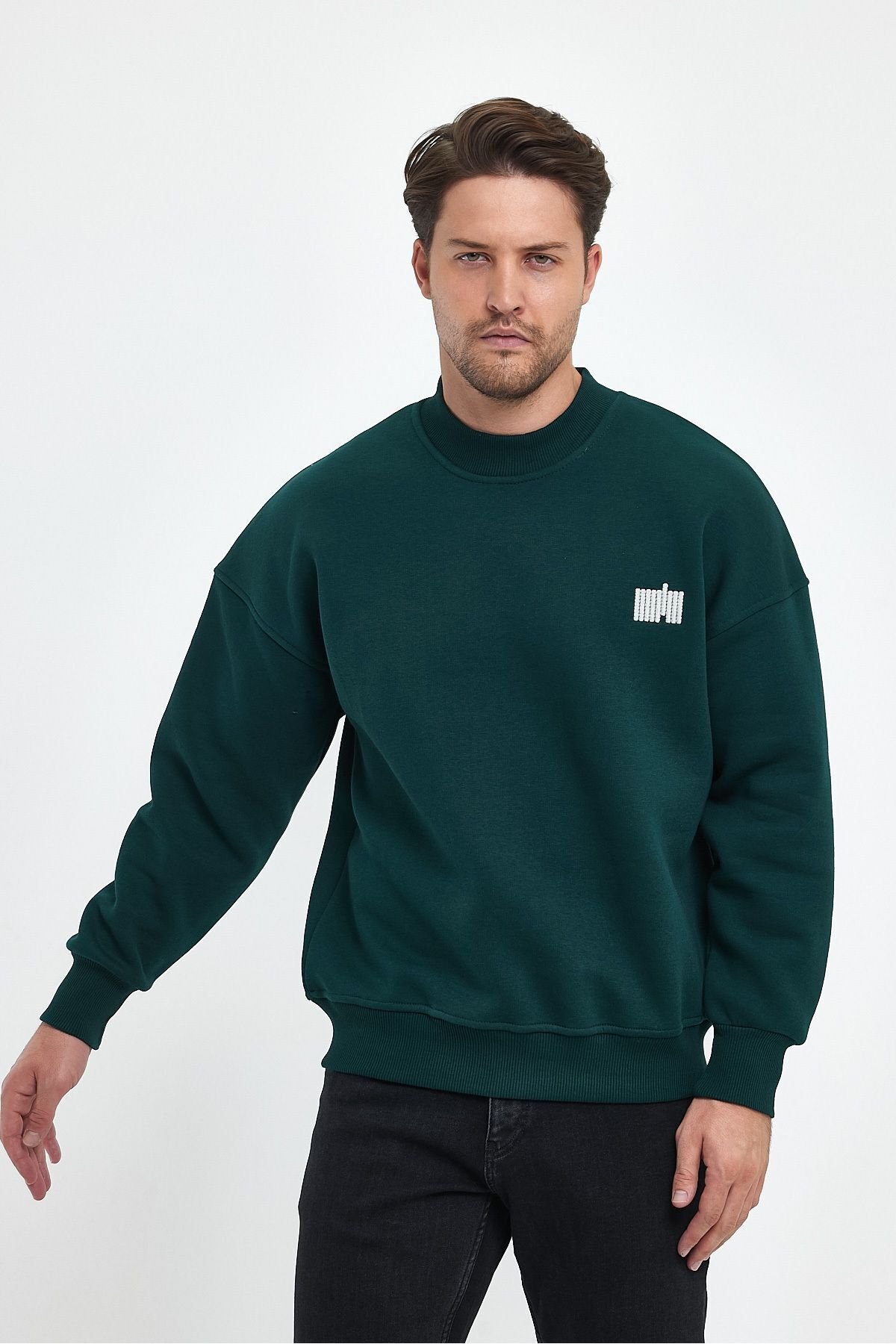 Erkek Boğazlı Nakışlı Oversize Sweatshirt KOYU YEŞİL Erkek Boğazlı Nakışlı Oversize Sweatshirt KOYU YEŞİL SWT.0025 2XL