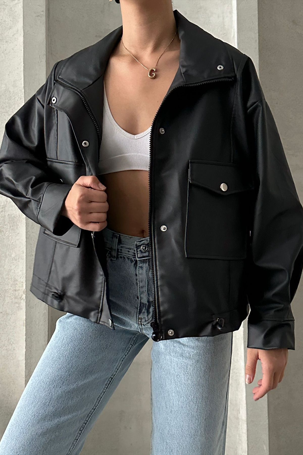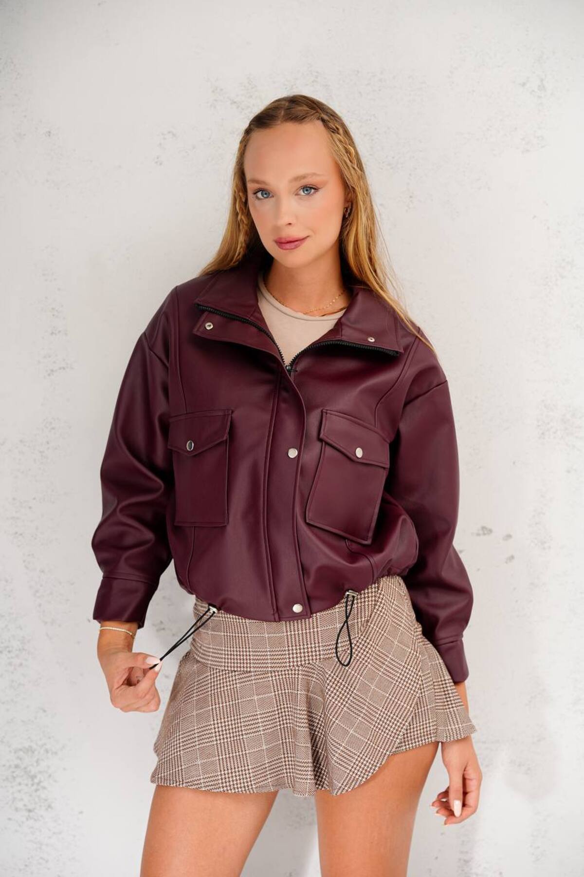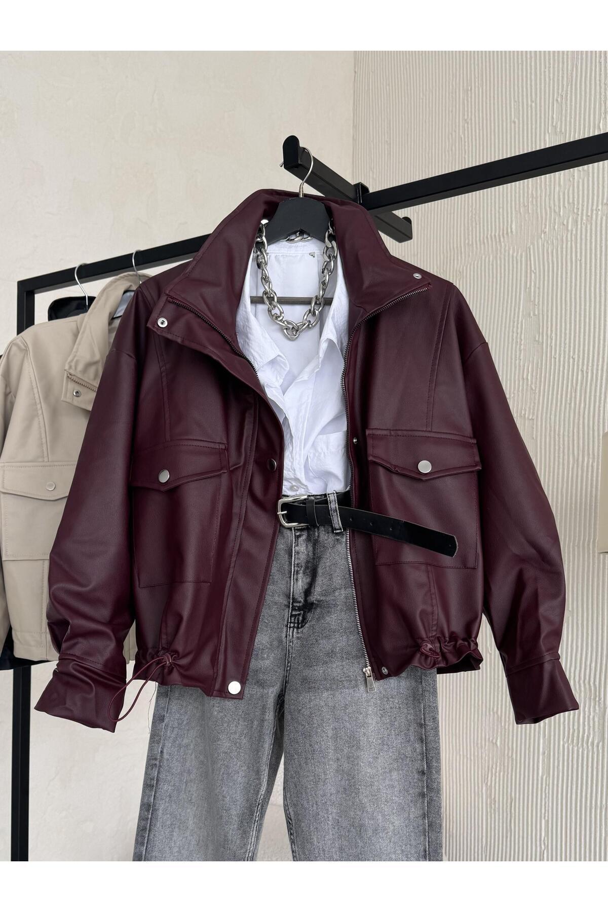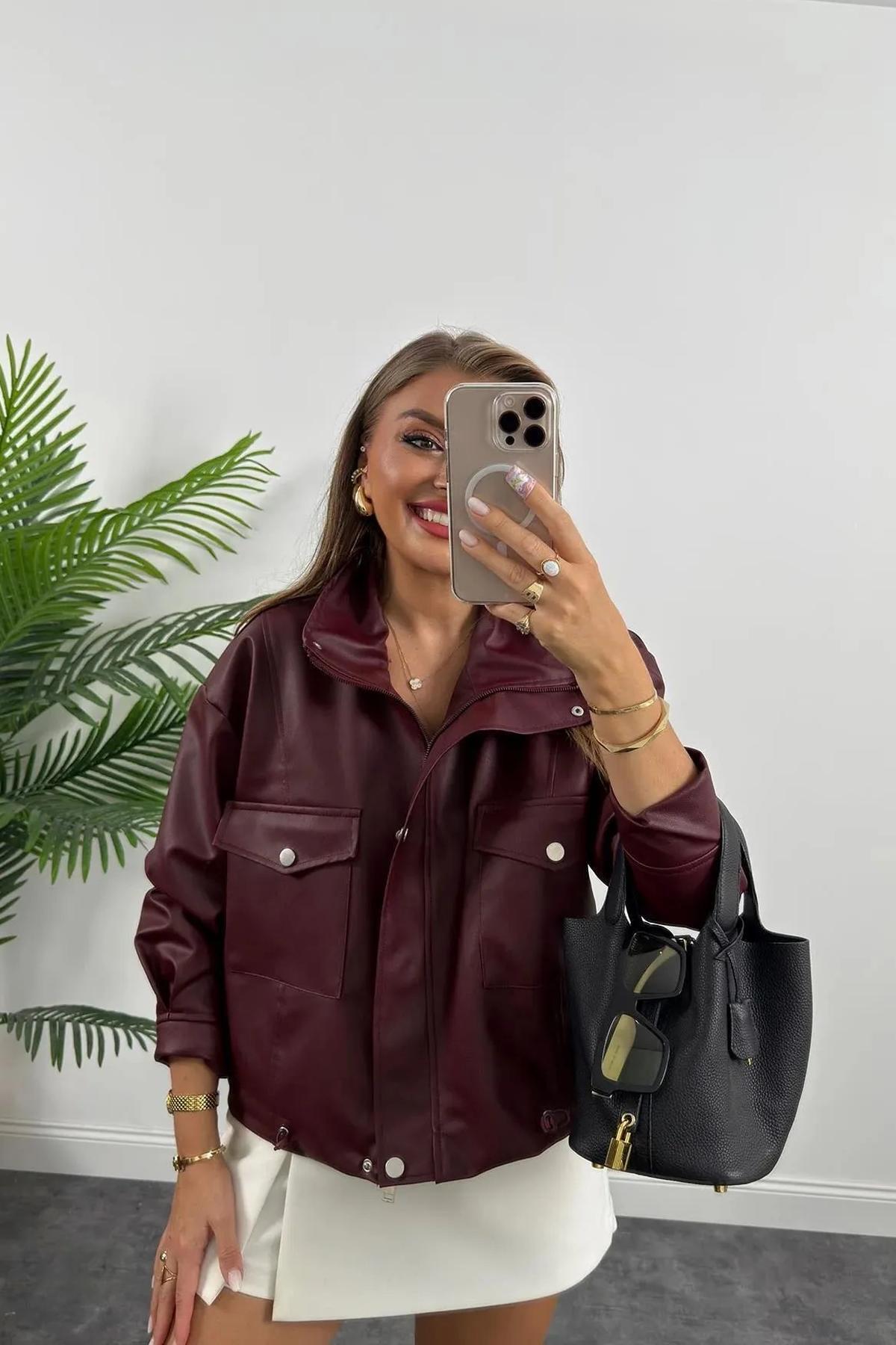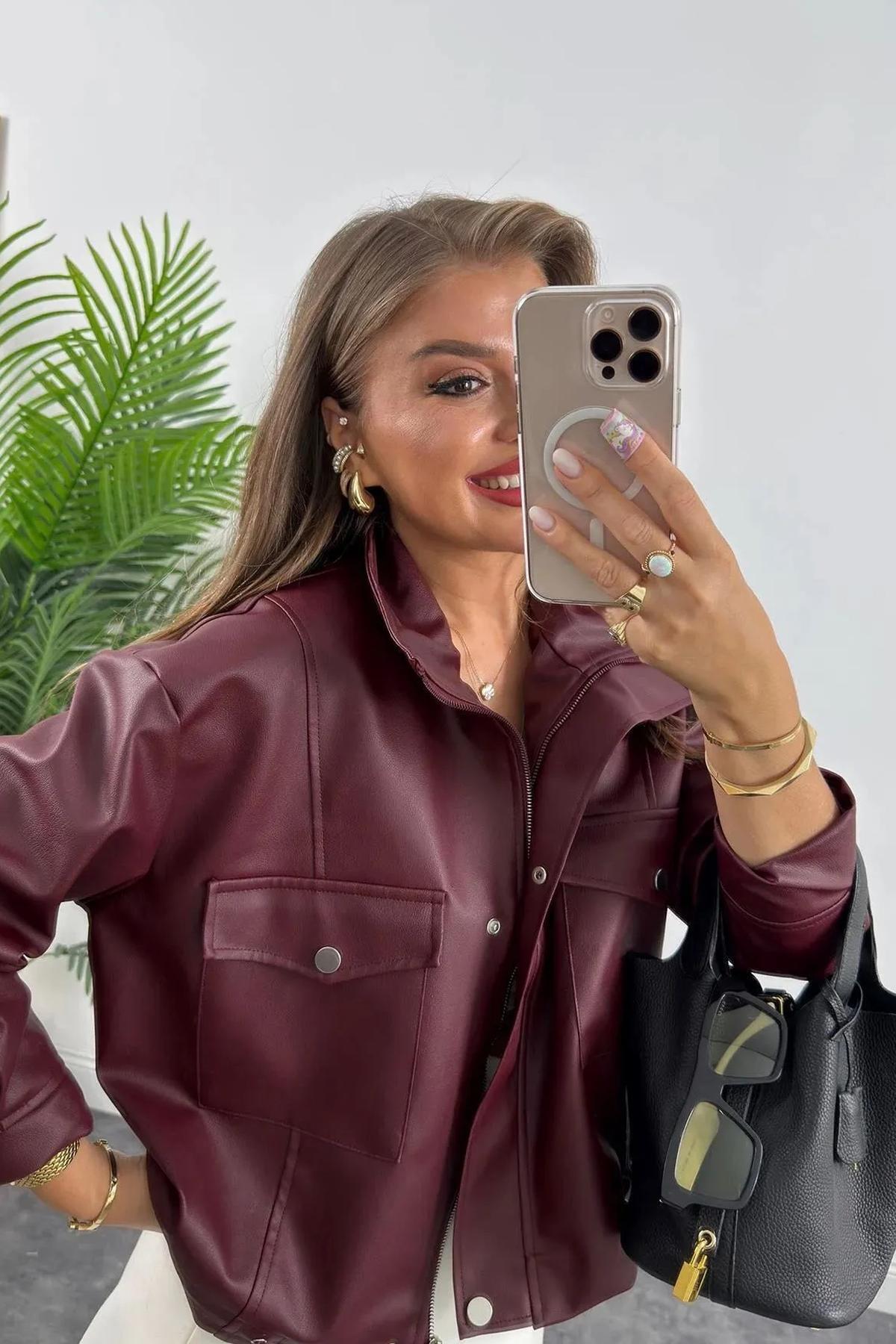 Bordo Cep Detaylı Kadın Deri Ceket Bordo Cep Detaylı Kadın Deri Ceket Y-Cep-Detaylı-Deri L