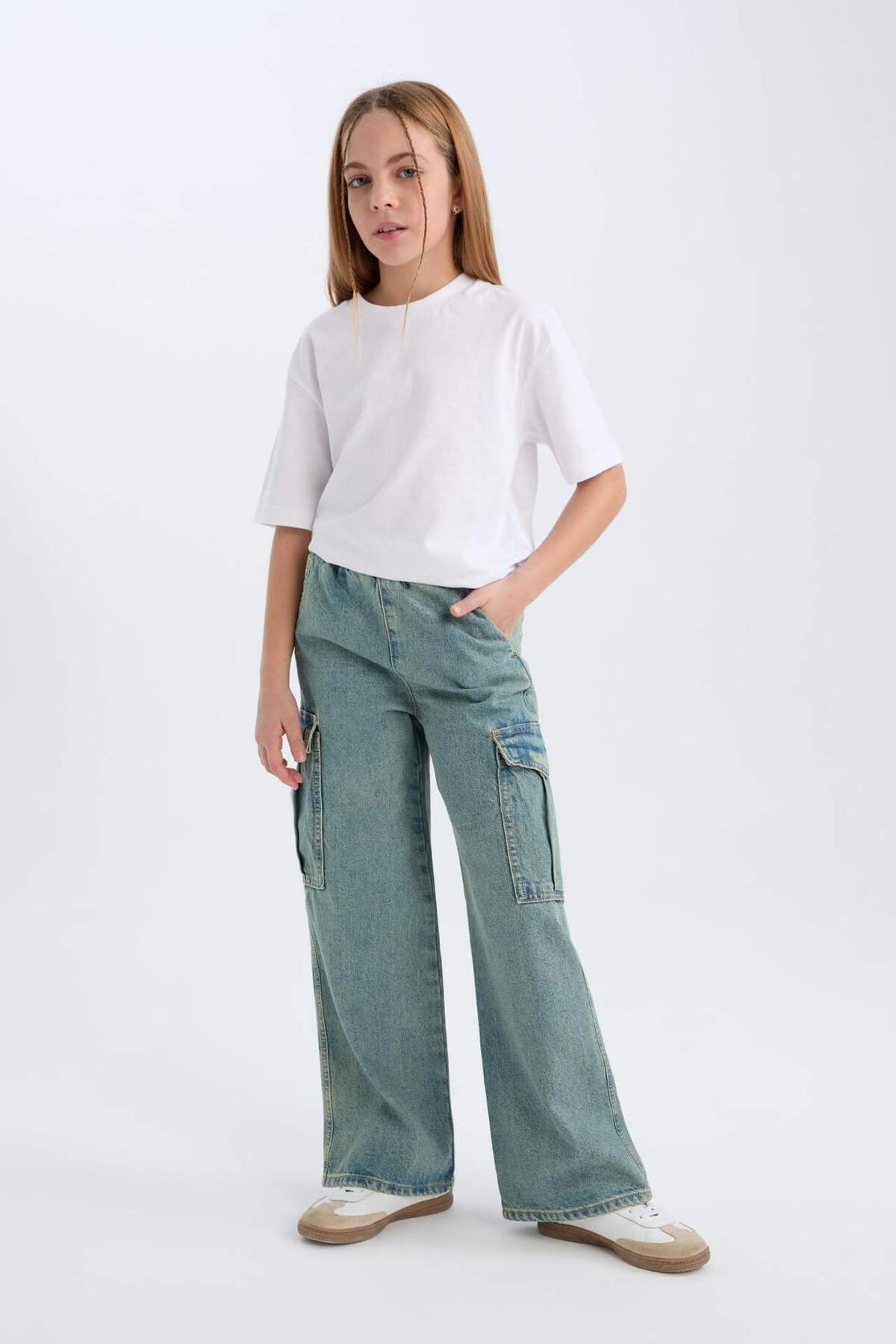 Kız Çocuk Kargo Cepli Wide Leg Geniş Bol Paça Jean Pantolon D4690A824WN Kız Çocuk Kargo Cepli Wide Leg Geniş Bol Paça Jean Pantolon D4690A824WN 3163943 13-14 Yaş