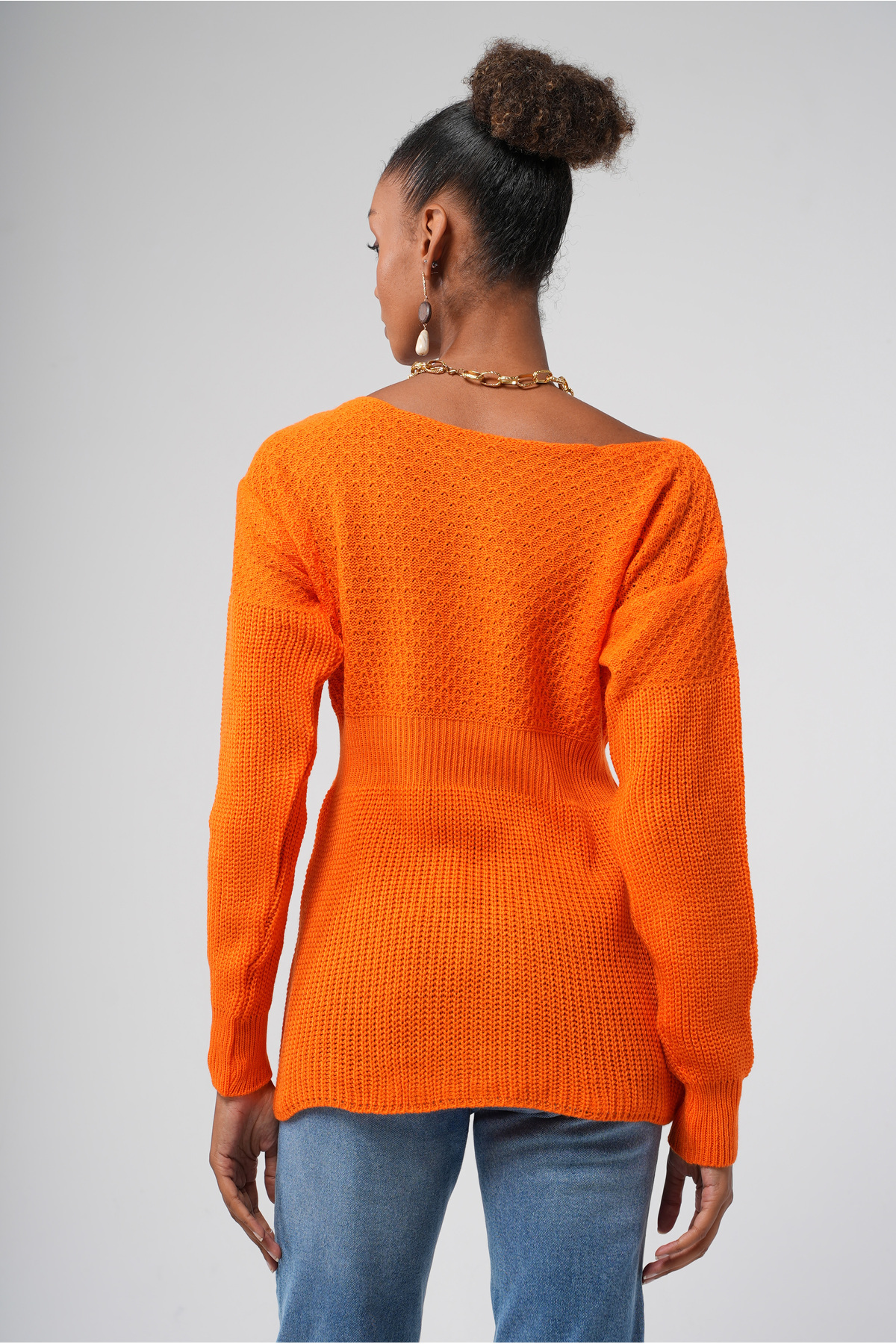 Kadın Kayık Yaka Beli Lastikli Kazak HOP85005 Kadın Kayık Yaka Beli Lastikli Kazak HOP85005 Standart