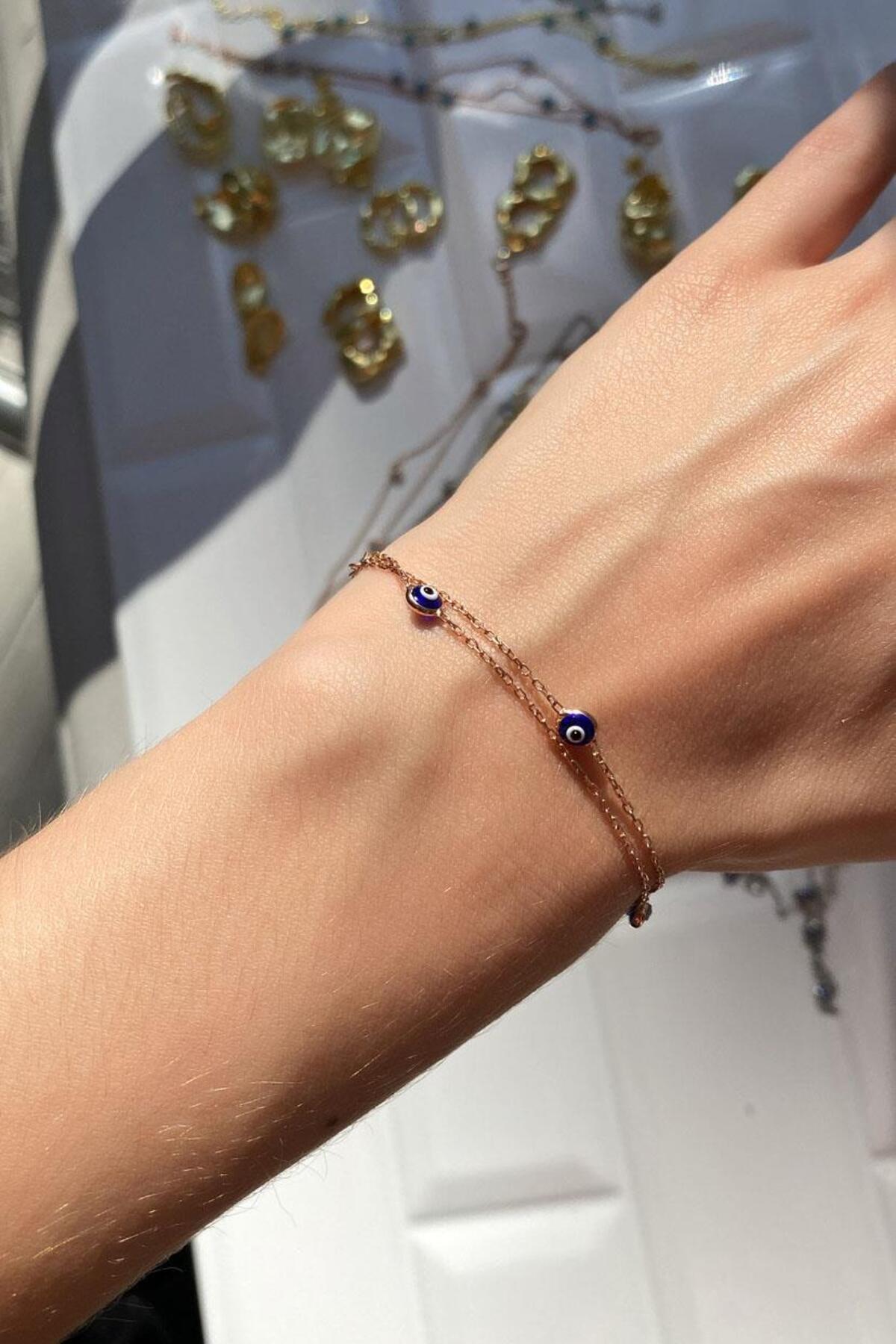 2 Sıralı Lacivert Mineli Nazar Gözlü Bileklik 2 Sıralı Lacivert Mineli Nazar Gözlü Bileklik SPB1220 تک سایز