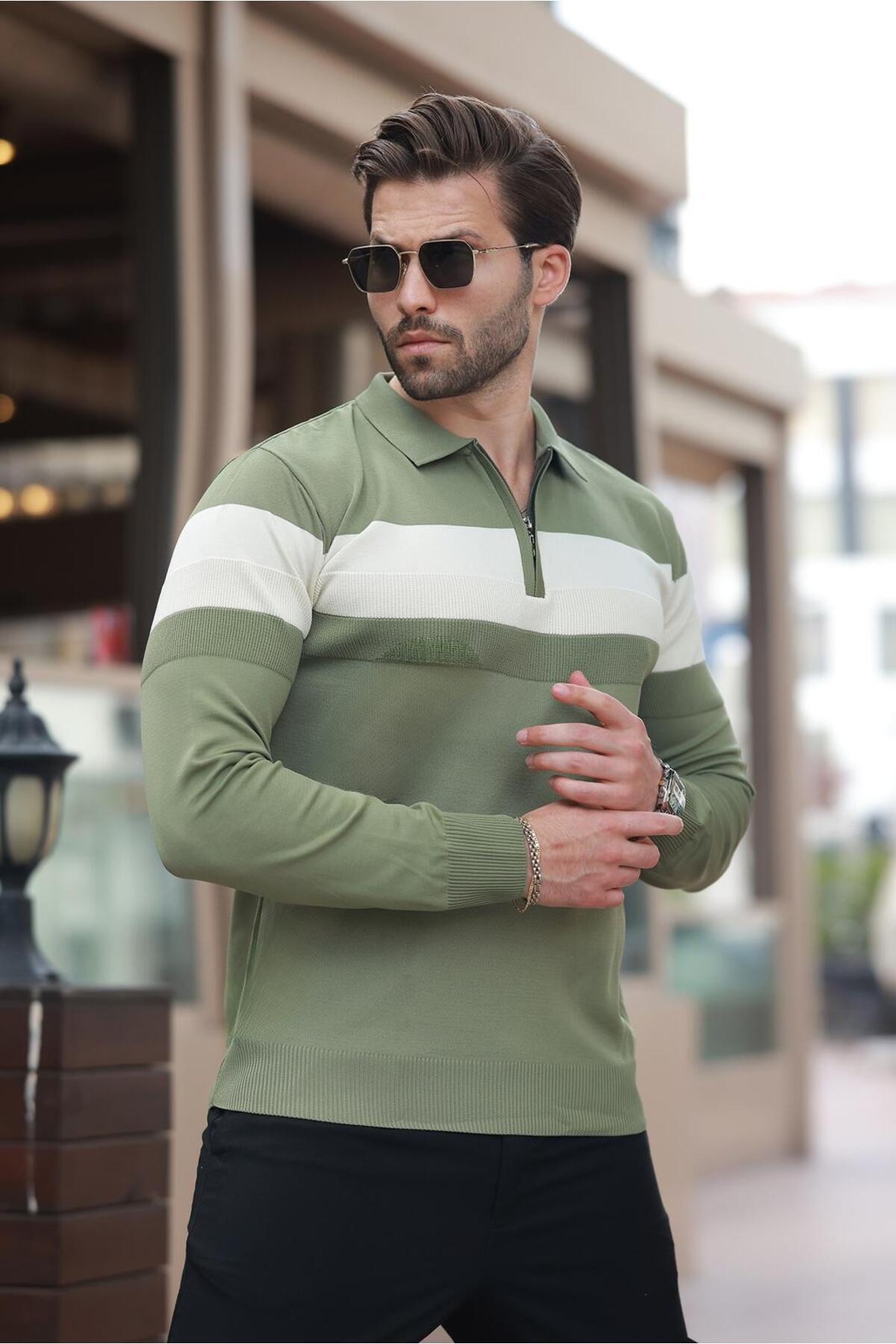 Haki Fermuarlı Polo Yaka Çizgili Uzun Kollu Kazak E7288 Haki Fermuarlı Polo Yaka Çizgili Uzun Kollu Kazak E7288 2XL