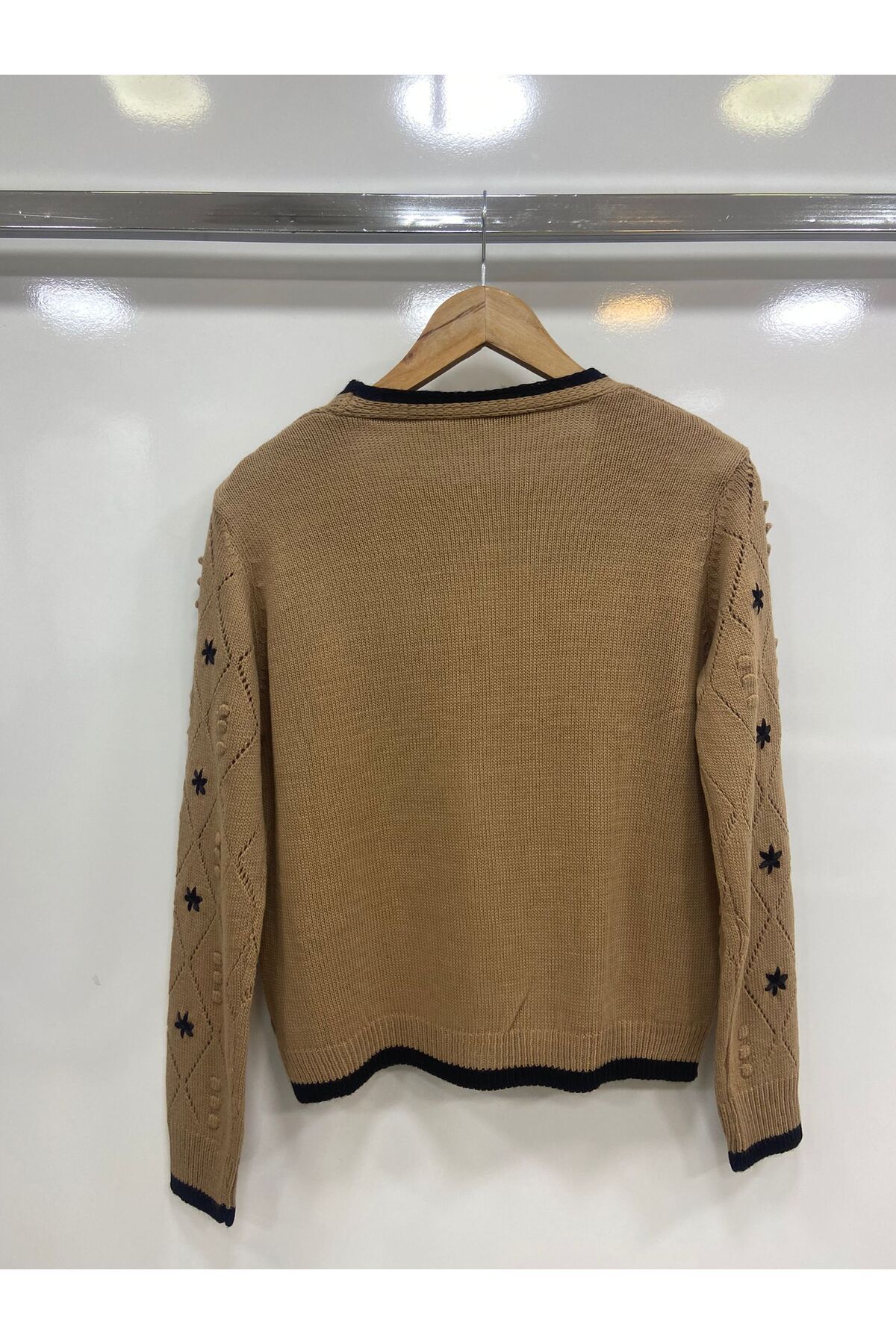 Örgülü Nakışlı V Yaka Hırka Örgülü Nakışlı V Yaka Hırka HRK4080DMR24 Standart