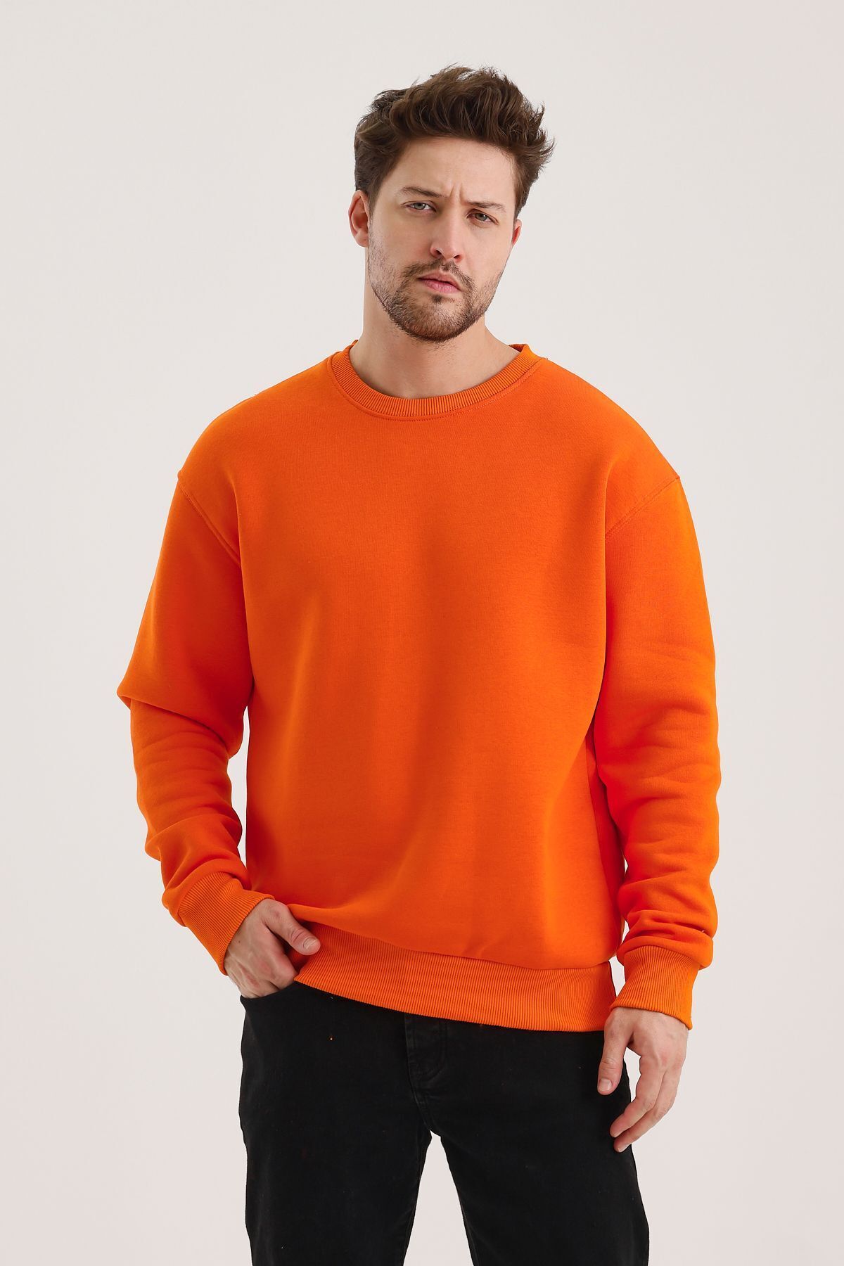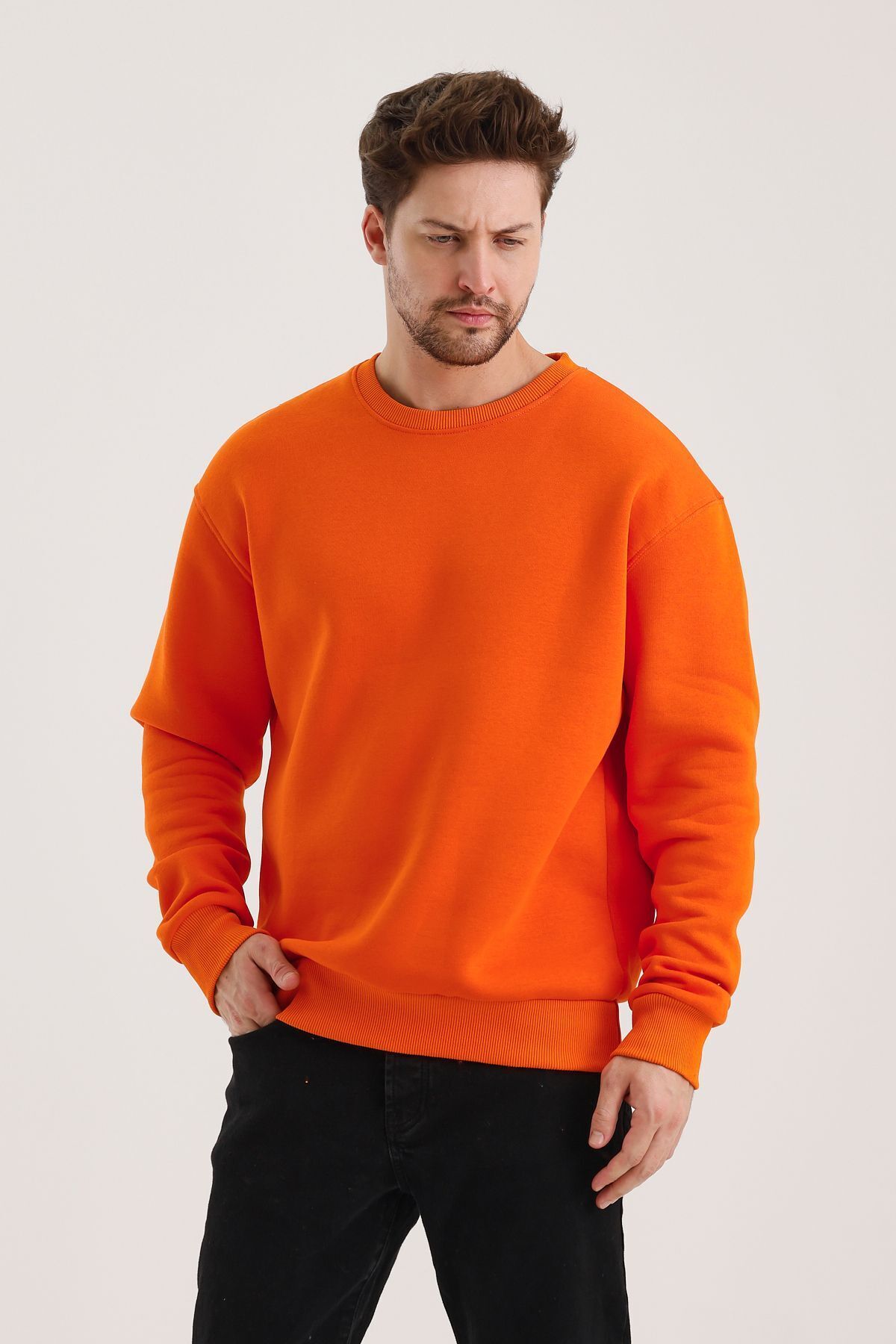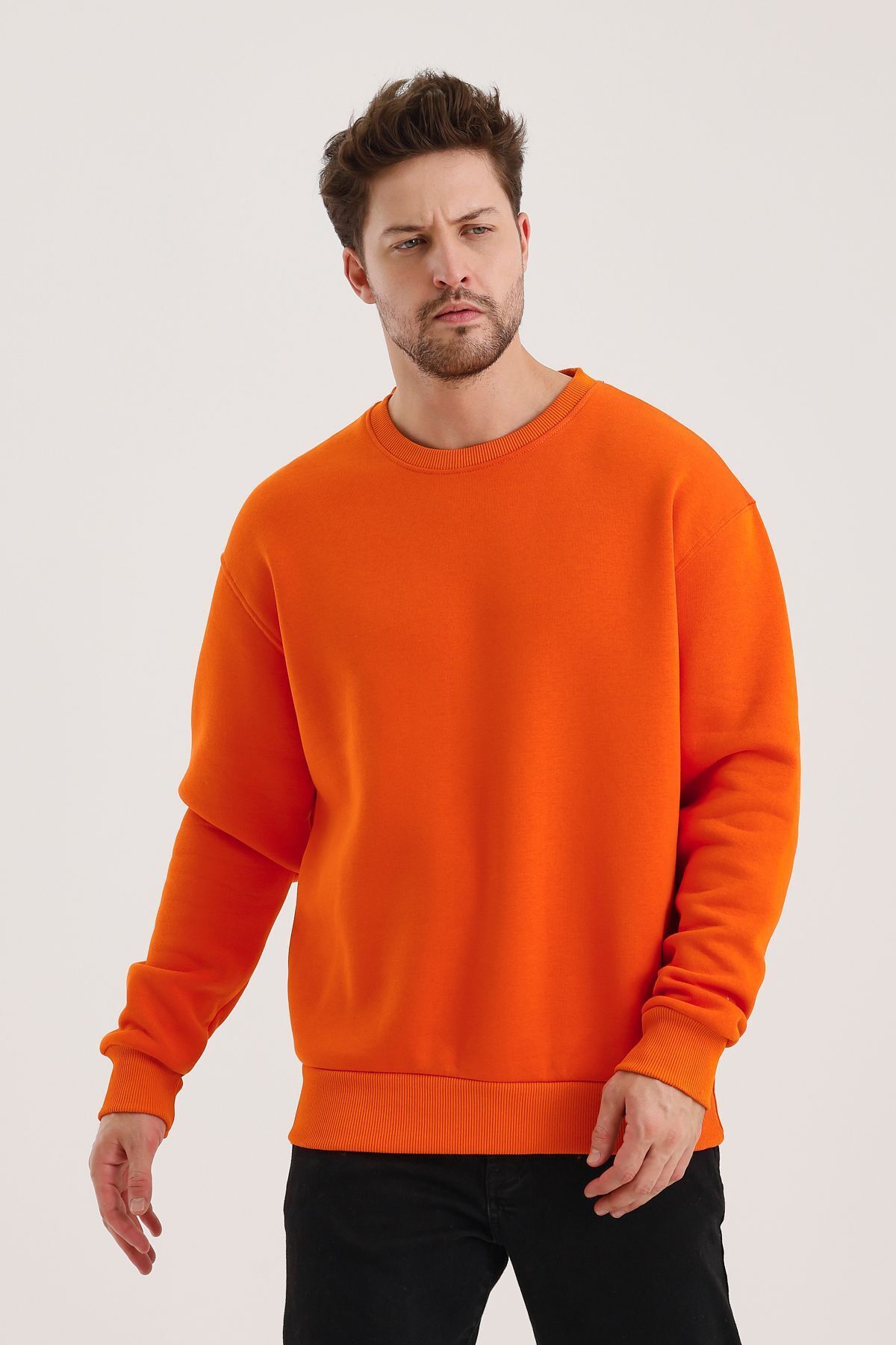 Turuncu Pamuklu Bisiklet Yaka Oversize Şardonlu Basic Erkek Sweatshirt Turuncu Pamuklu Bisiklet Yaka Oversize Şardonlu Basic Erkek Sweatshirt SWT.0026 2XL