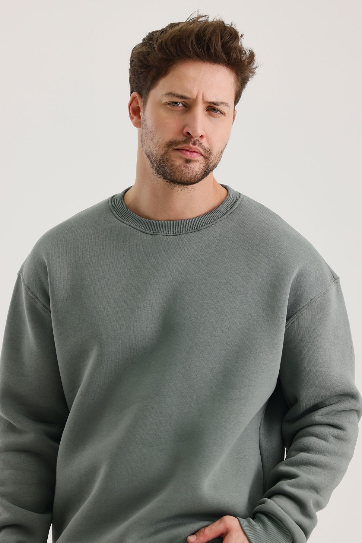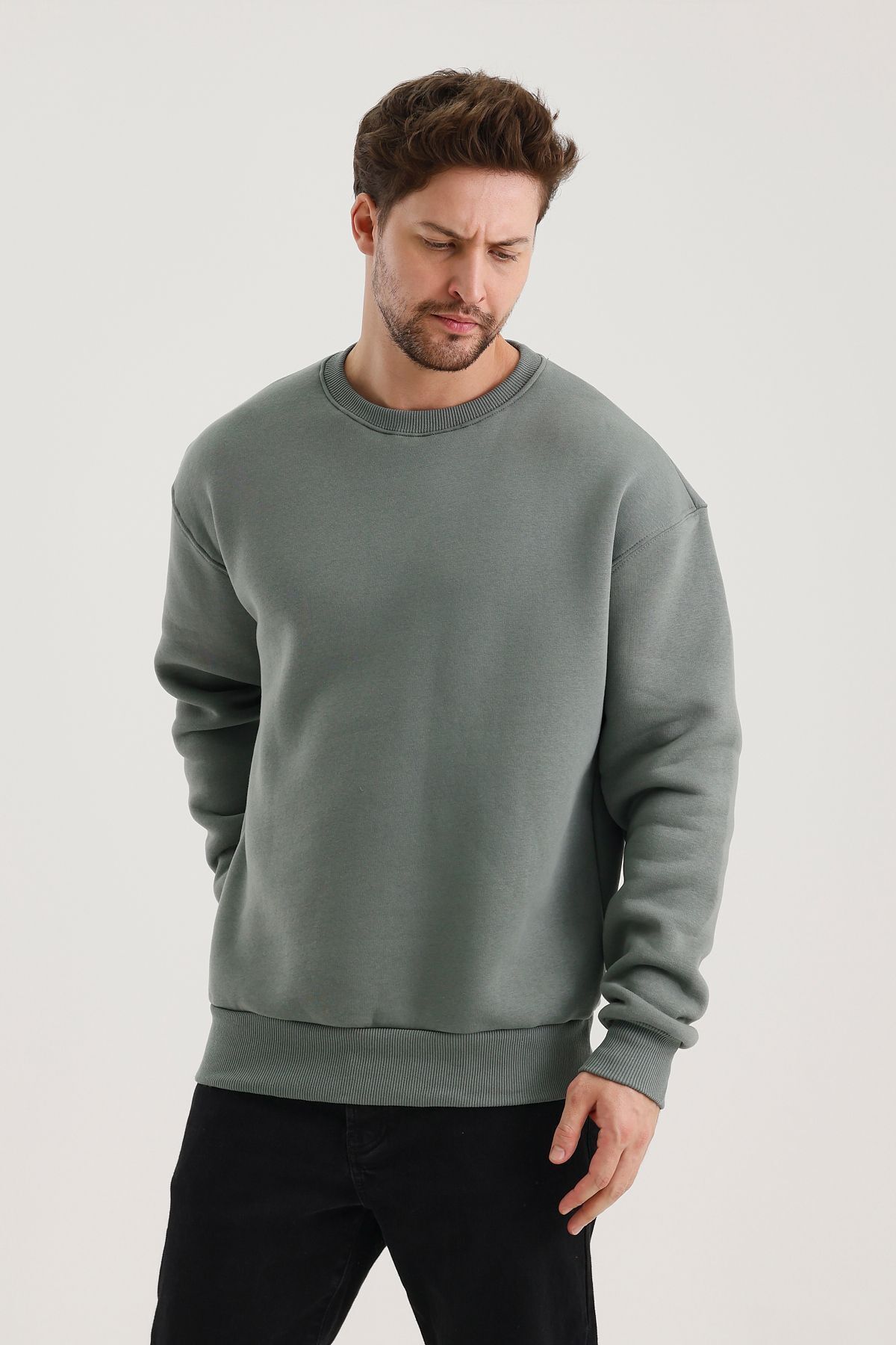 Küf Rengi Bisiklet Yaka Oversize Şardonlu Basic Erkek Sweatshirt Küf Rengi Bisiklet Yaka Oversize Şardonlu Basic Erkek Sweatshirt SWT.0026 2XL