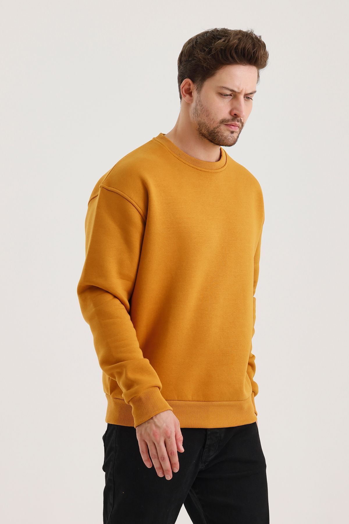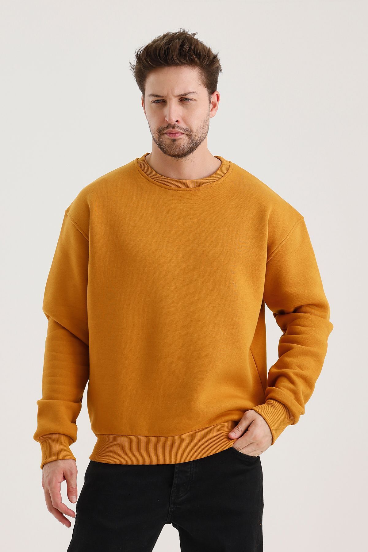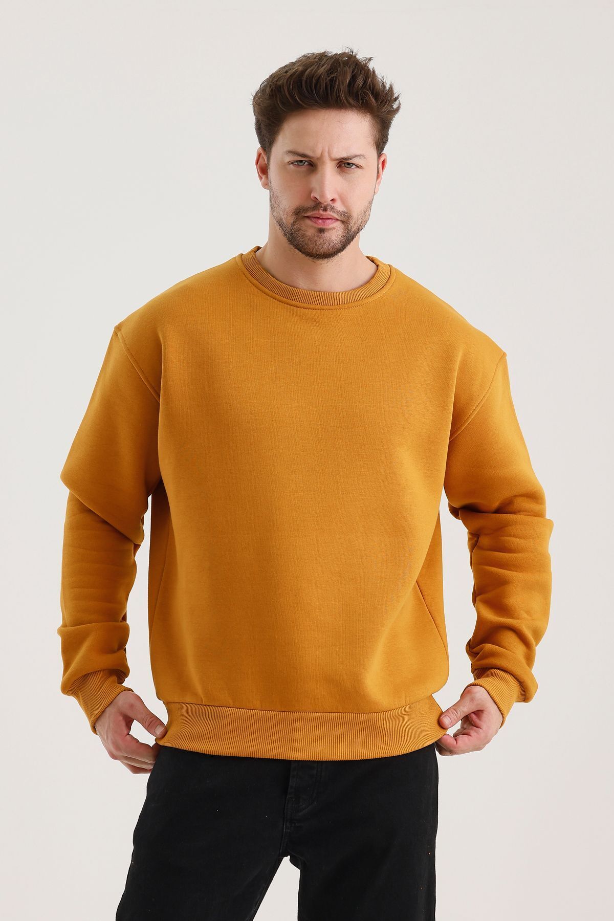 Hardal Bisiklet Yaka Oversize Şardonlu Basic Erkek Sweatshirt Hardal Bisiklet Yaka Oversize Şardonlu Basic Erkek Sweatshirt SWT.0026 2XL
