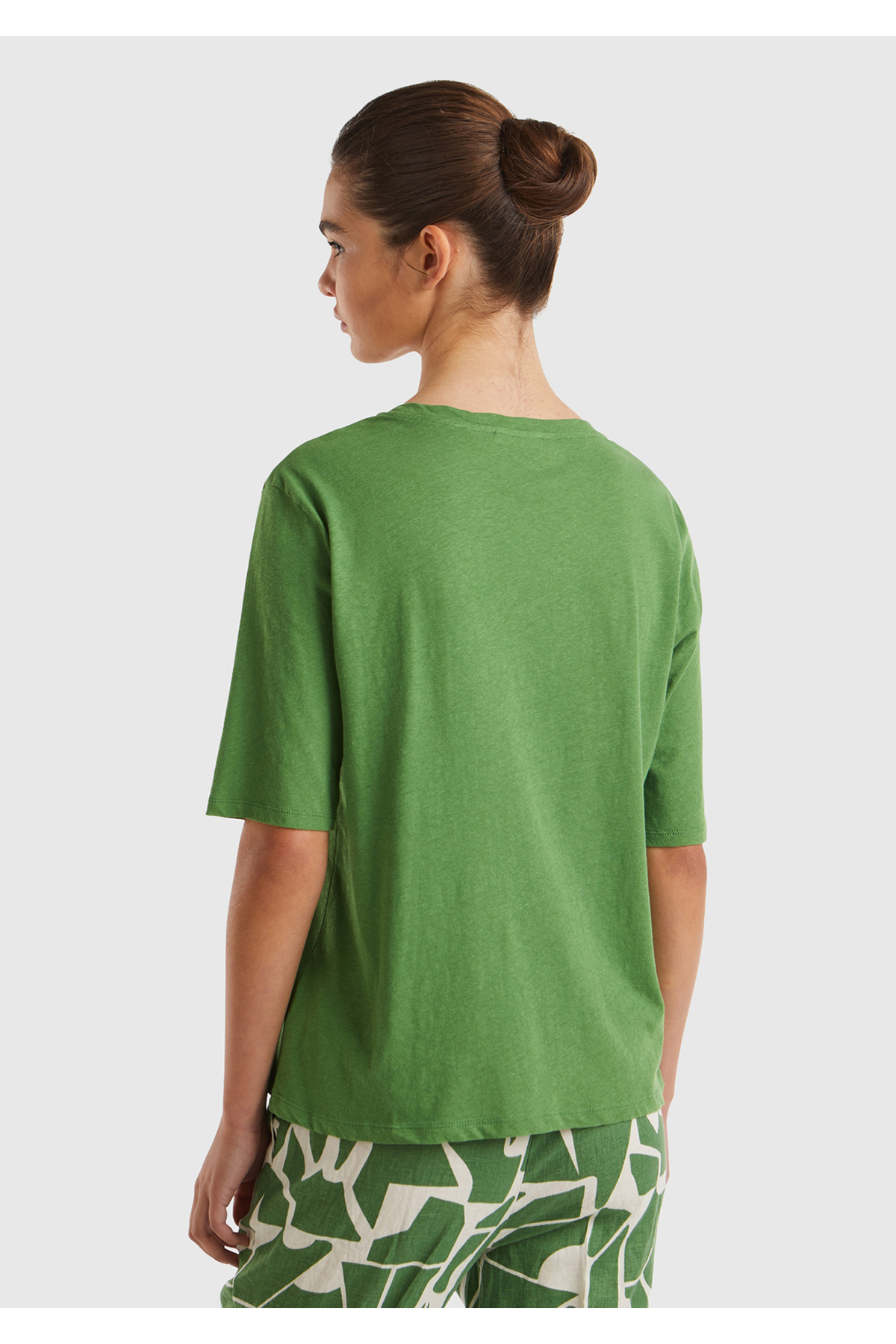 Kadın Soluk Yeşil Pamuk Keten Karışımlı V Yaka Rahat Kesim T-Shirt Kadın Soluk Yeşil Pamuk Keten Karışımlı V Yaka Rahat Kesim T-Shirt 124P3D8FD4019 XXS