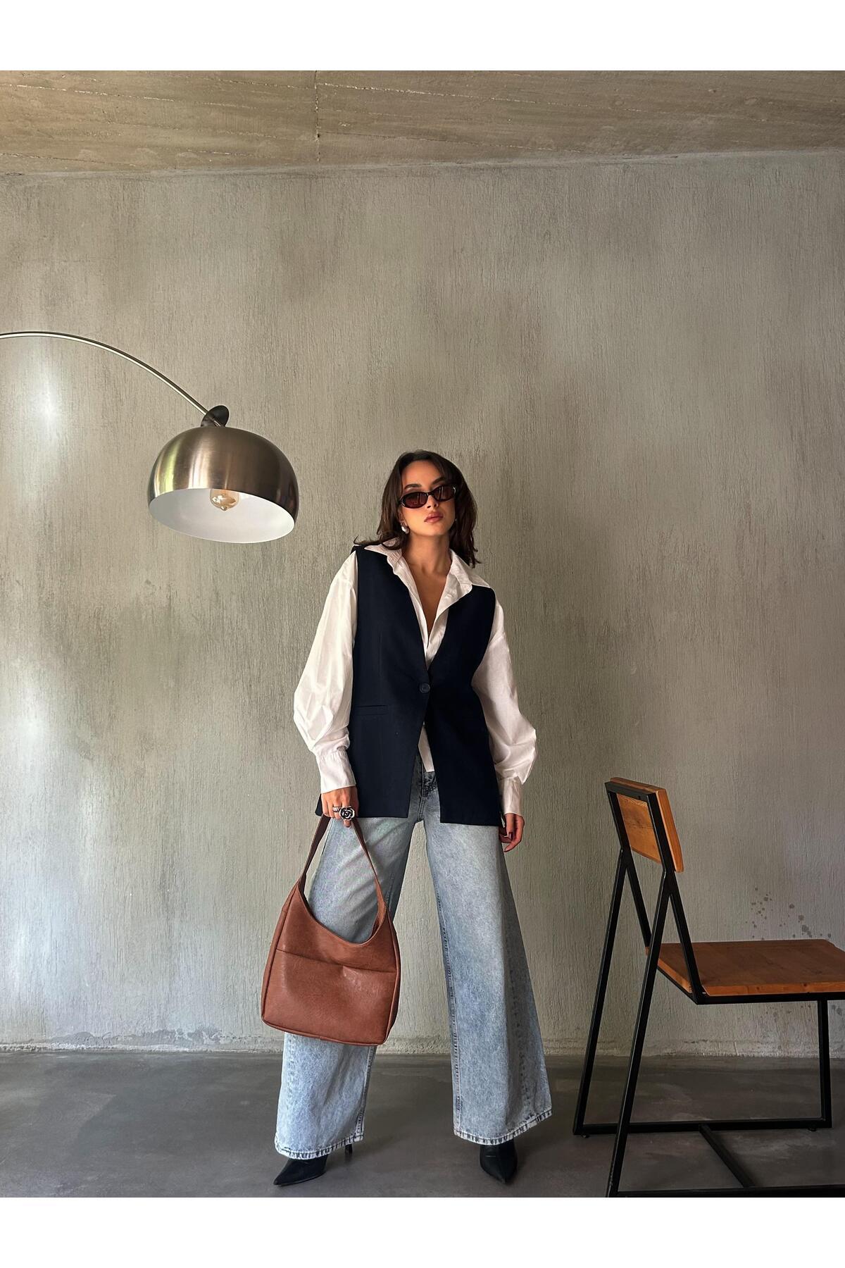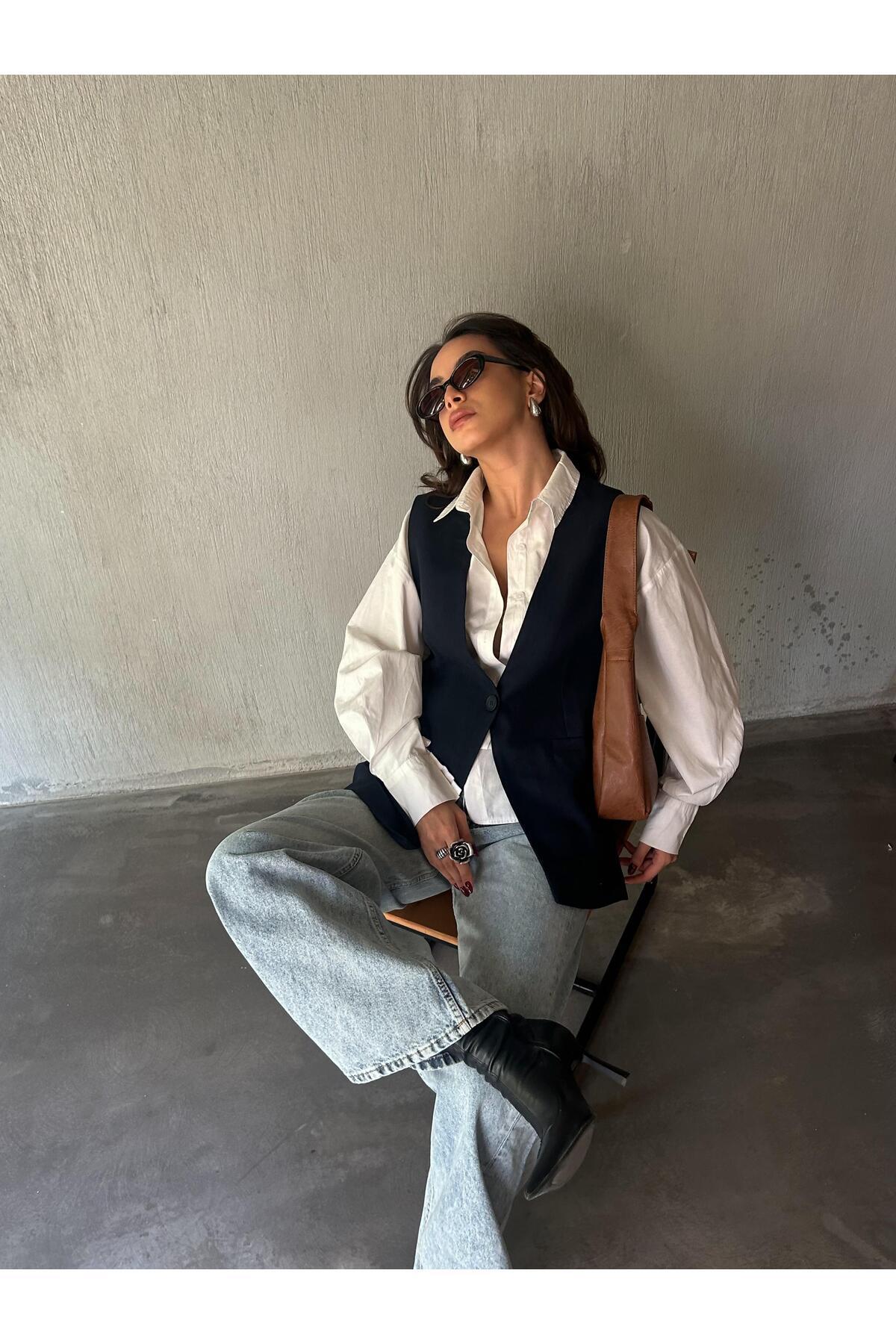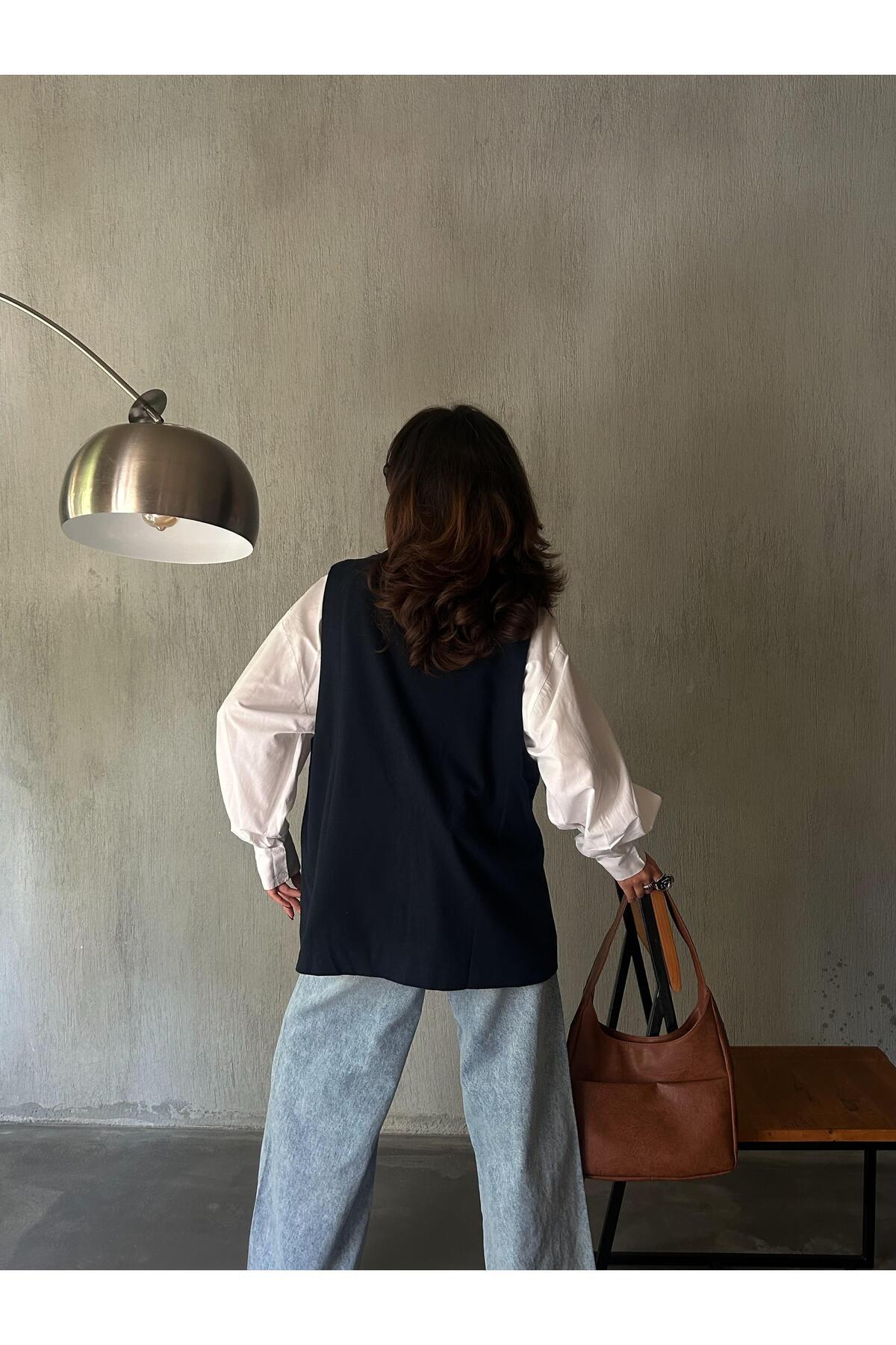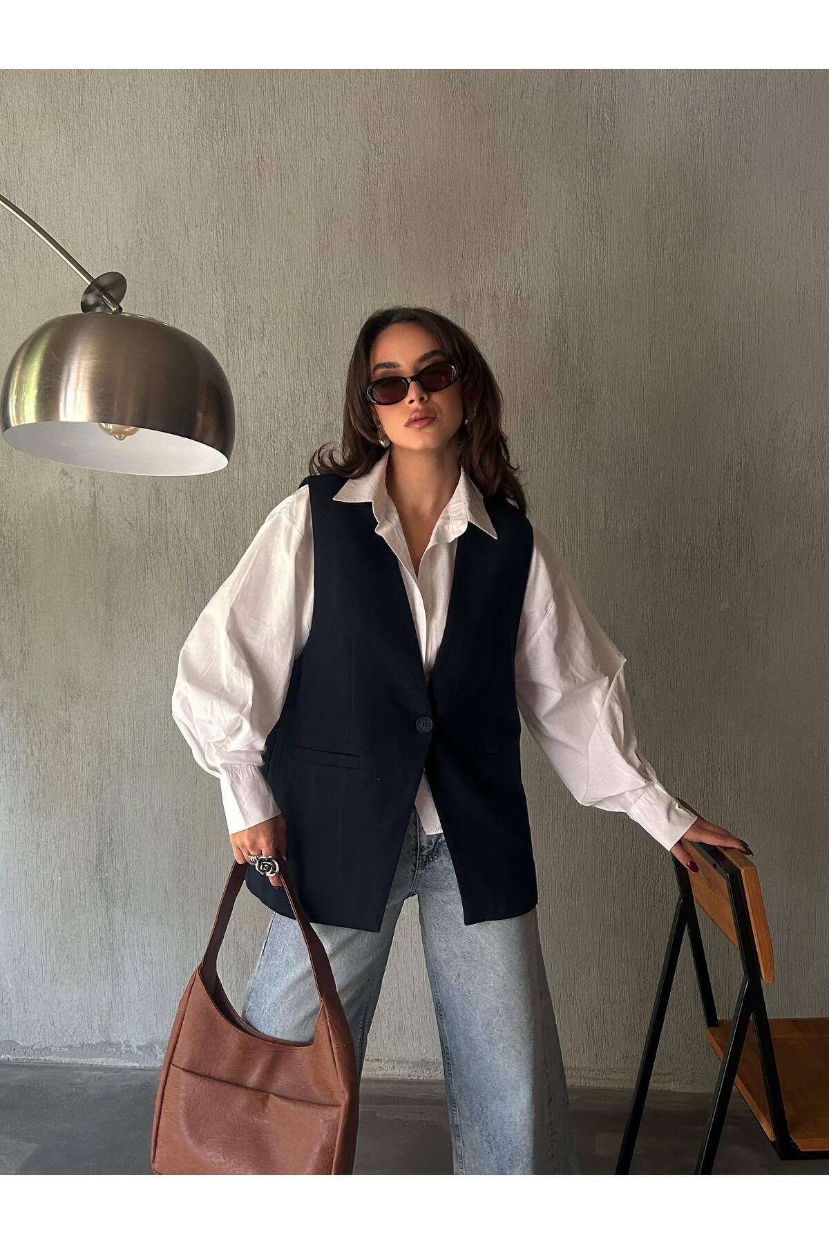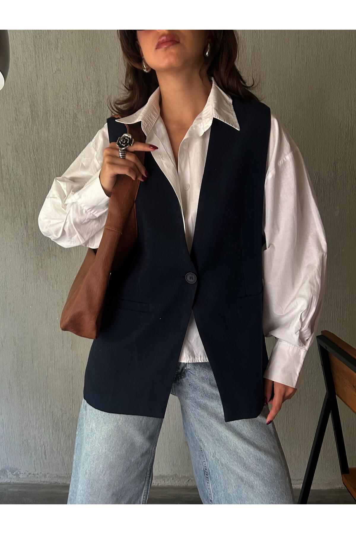 Kadın Lacivert Şardonlu Poliviskon Geniş Kesim Astarlı Yelek 28243 Kadın Lacivert Şardonlu Poliviskon Geniş Kesim Astarlı Yelek 28243 L