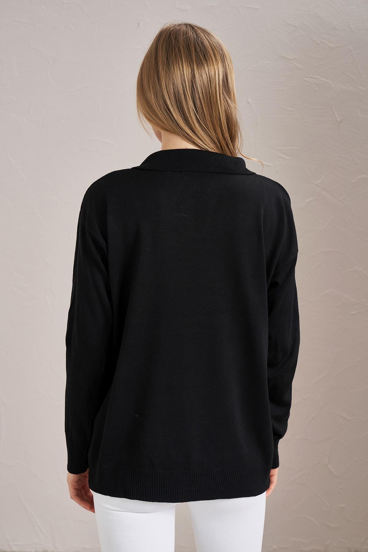 Kadın Siyah Gömlek Yaka Basic Triko Kazak Kadın Siyah Gömlek Yaka Basic Triko Kazak 4KKTRTN9061 Standart