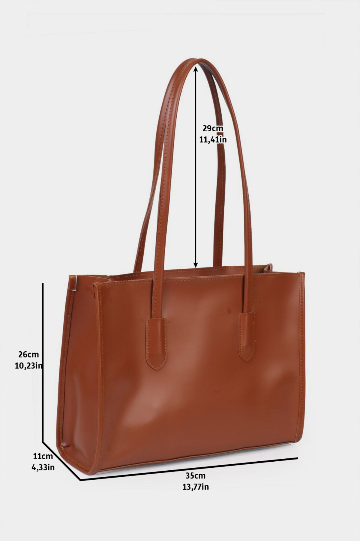 مشخصات فنی Şık Rugan Deri Fermuar Kapama Günlük İş ve Seyehat için İdeal Tek Bölmeli Kadın Omuz Çantası