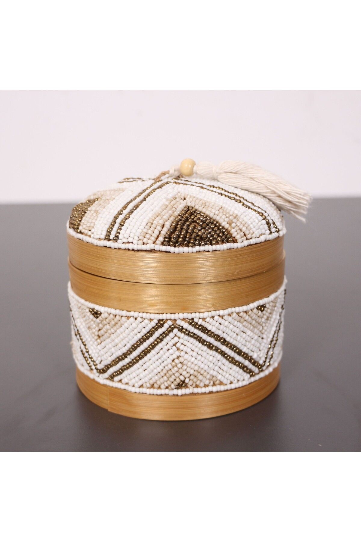 Bali Boncuklu Bambu Saklama Kutusu 16x10 cm Bali Boncuklu Bambu Saklama Kutusu 16x10 cm RN020 تک سایز