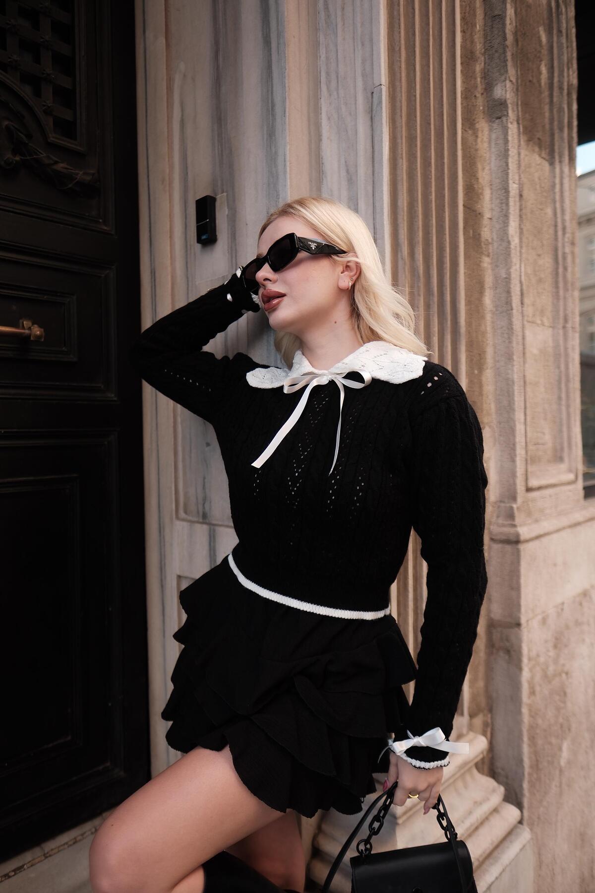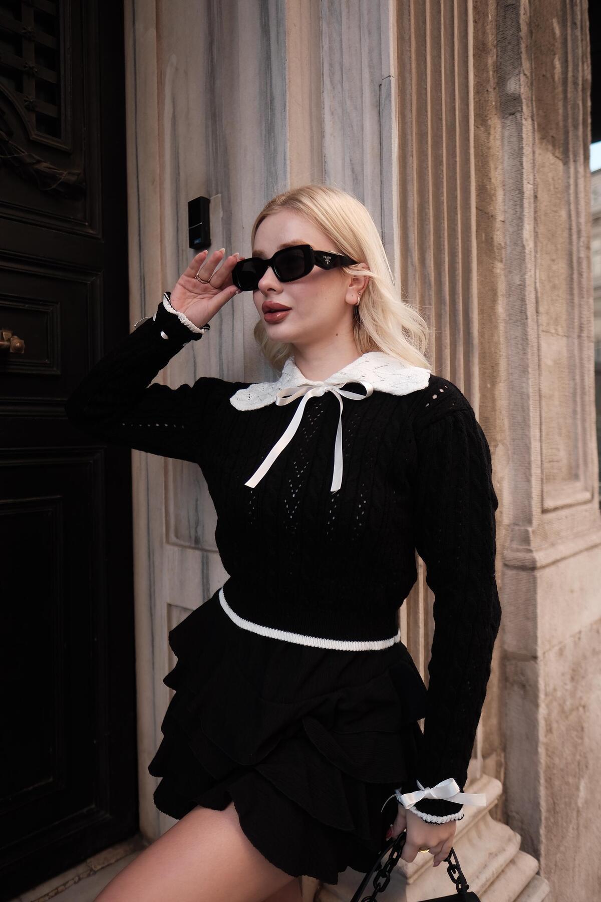 Bebe Yaka Siyah Kurdele Fiyonk Detaylı Trend Triko Kazak Bebe Yaka Siyah Kurdele Fiyonk Detaylı Trend Triko Kazak nlztrend777 Standart