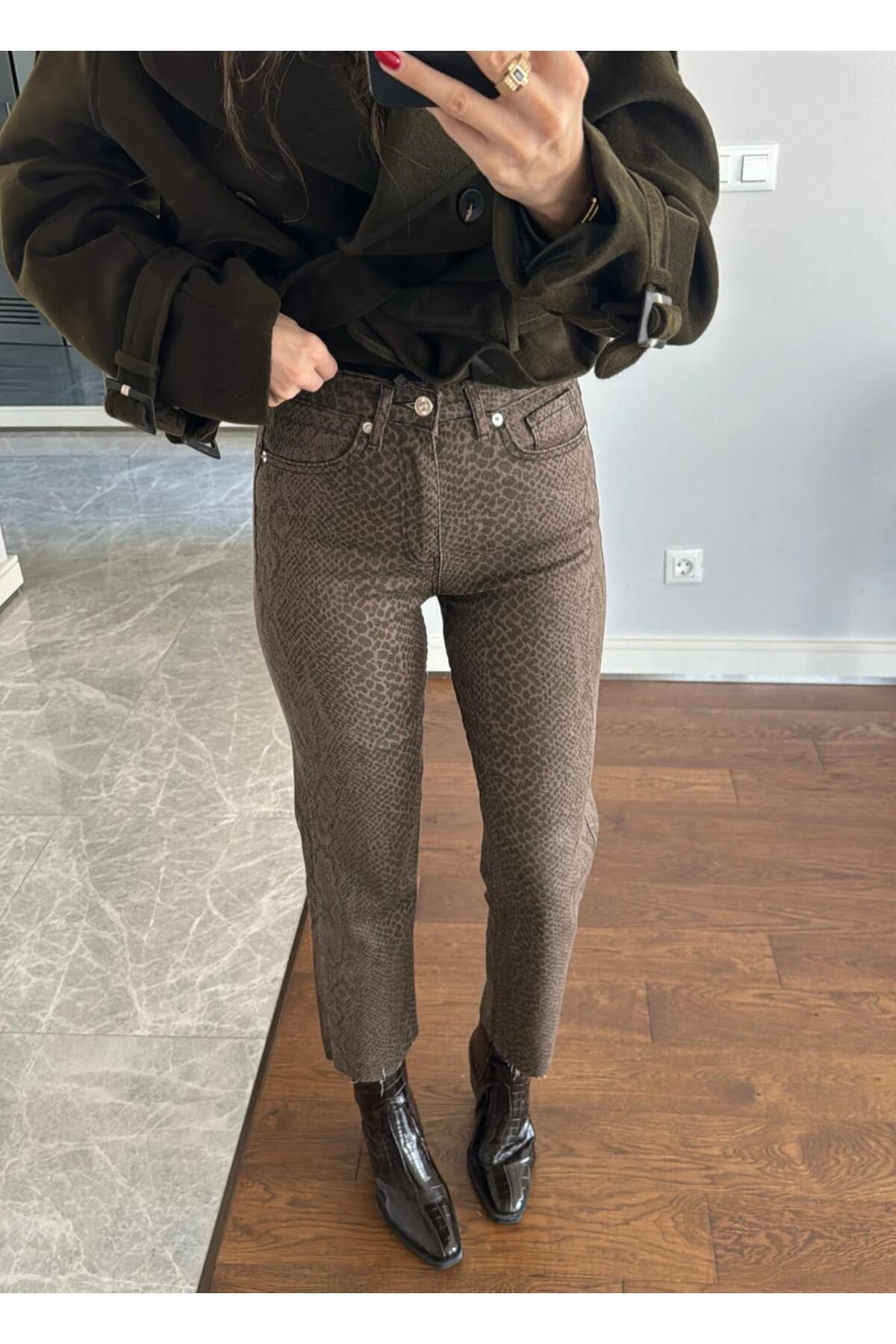 Kadın Leopar Yılan Desenli Wideleg Loose Jeans. Yüksek Bel Bol Paça Bel Dar Leopar Jeans Pantolon Kadın Leopar Yılan Desenli Wideleg Loose Jeans. Yüksek Bel Bol Paça Bel Dar Leopar Jeans Pantolon F1524 L
