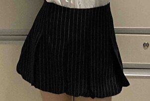 Çizgili Pileli Mini Balon Etek Çizgili Pileli Mini Balon Etek M21Z6JWO L