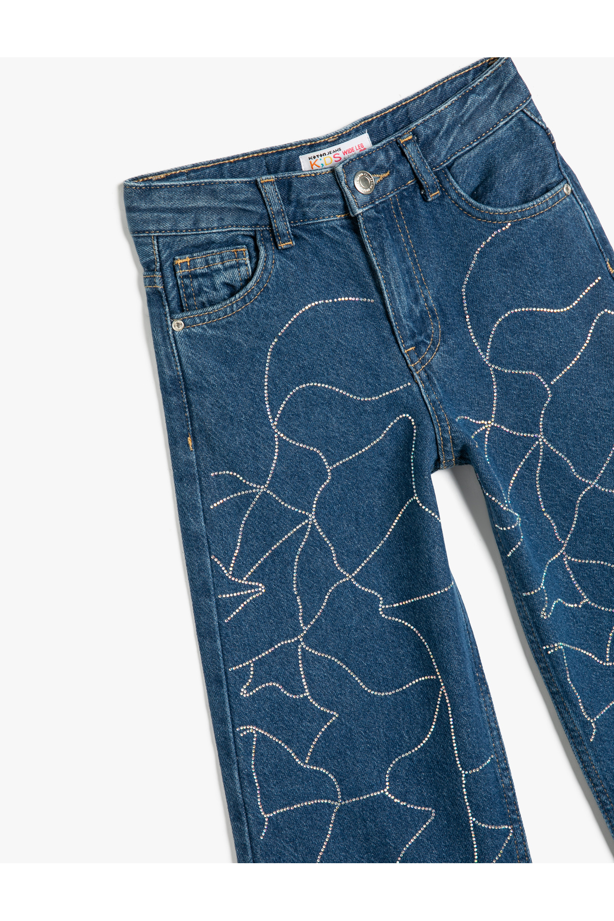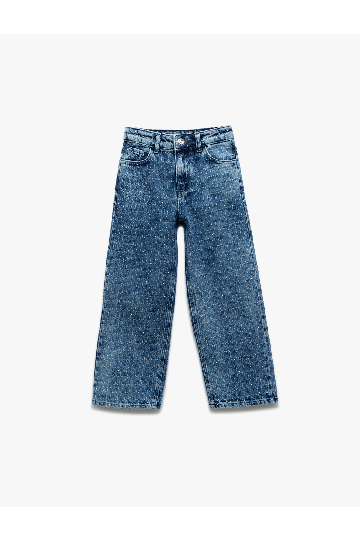 Taş Detaylı Geniş Paça Cepli Pamuklu Kot Pantolon - Wide Leg Jean Taş Detaylı Geniş Paça Cepli Pamuklu Kot Pantolon - Wide Leg Jean 5SKG40052AD 13-14 Yaş