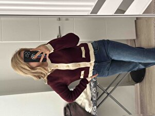 Kadın Bordo Kontrast Renkli Şık Düğmeli Triko Hırka DP00223 Kadın Bordo Kontrast Renkli Şık Düğmeli Triko Hırka DP00223 dp00223 S/M