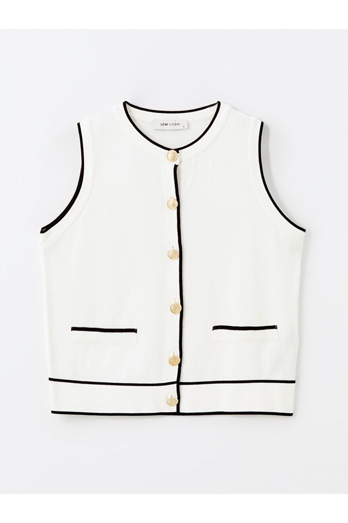 Kadın Ekru Kontrast Şerit Detaylı Triko Yelek FN03406 Kadın Ekru Kontrast Şerit Detaylı Triko Yelek FN03406 تک سایز