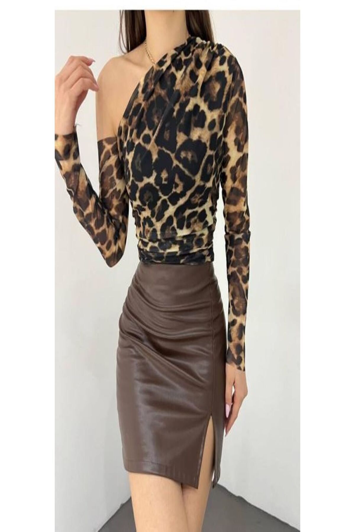 Leopar Desenli Büzgülü Bluz Leopar Desenli Büzgülü Bluz dhdleosandy XL