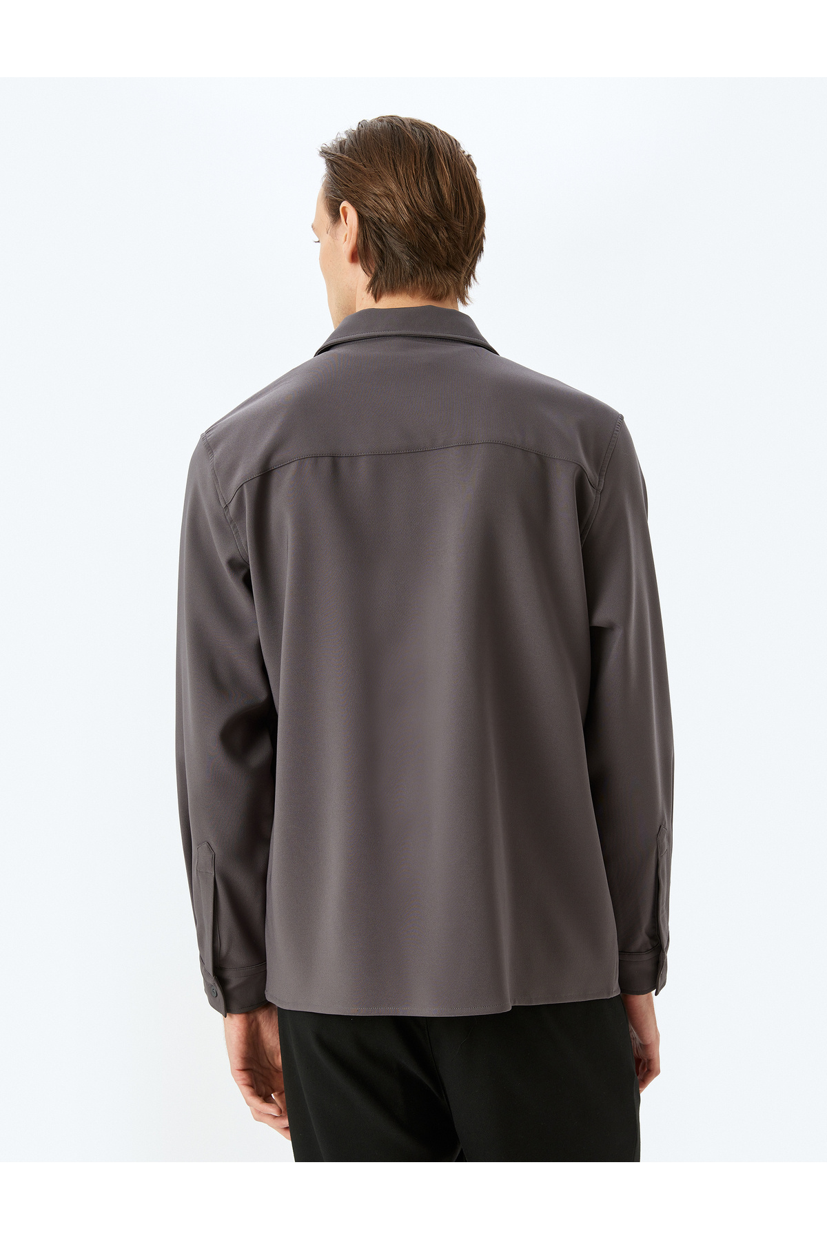 Kapaklı Cep Detaylı Regular Fit Düğmeli Uzun Kollu Gömlek Kapaklı Cep Detaylı Regular Fit Düğmeli Uzun Kollu Gömlek 5WAM60145HW L