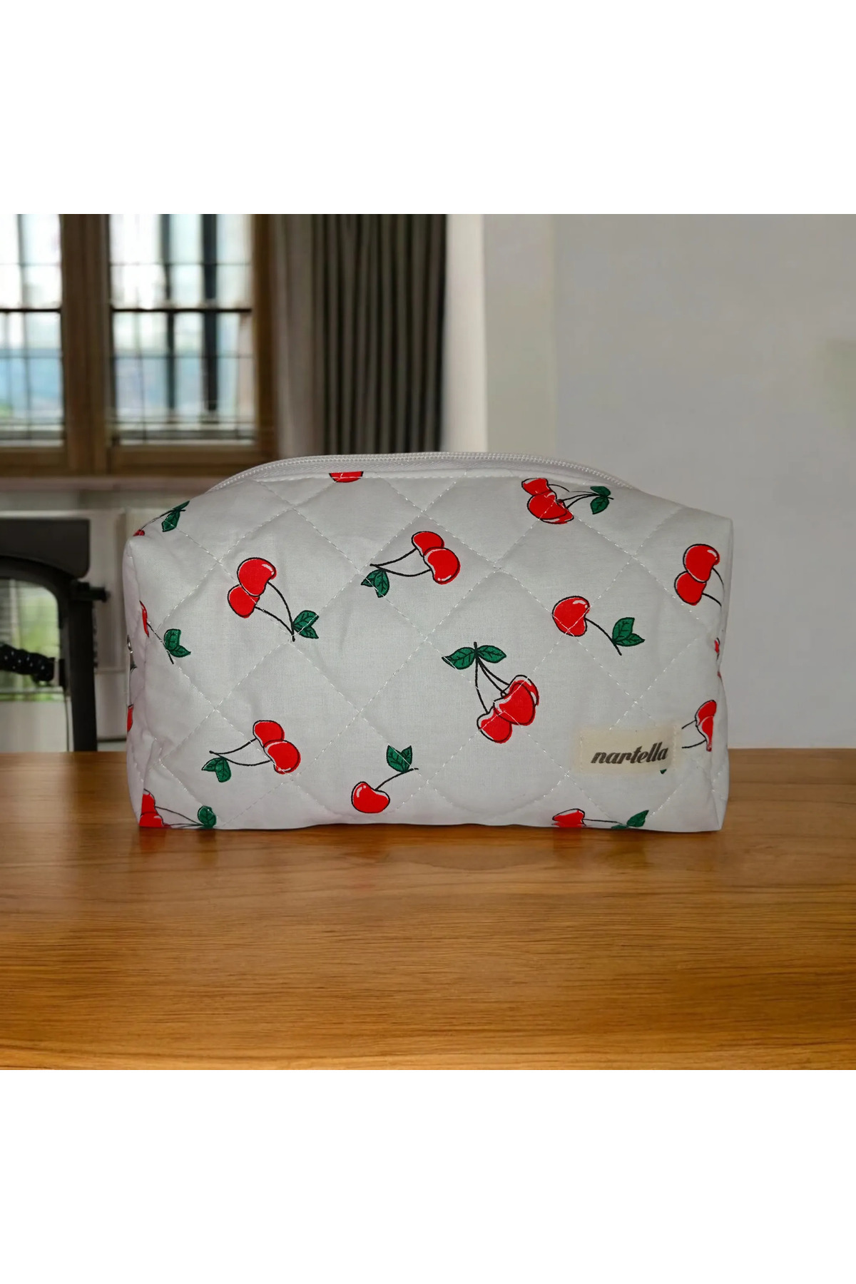Kırmızı Kiraz Desenli Makyaj Çantası – Büyük Boy, Kapitone Tasarım Kırmızı Kiraz Desenli Makyaj Çantası – Büyük Boy, Kapitone Tasarım 19822008147narbags تک سایز