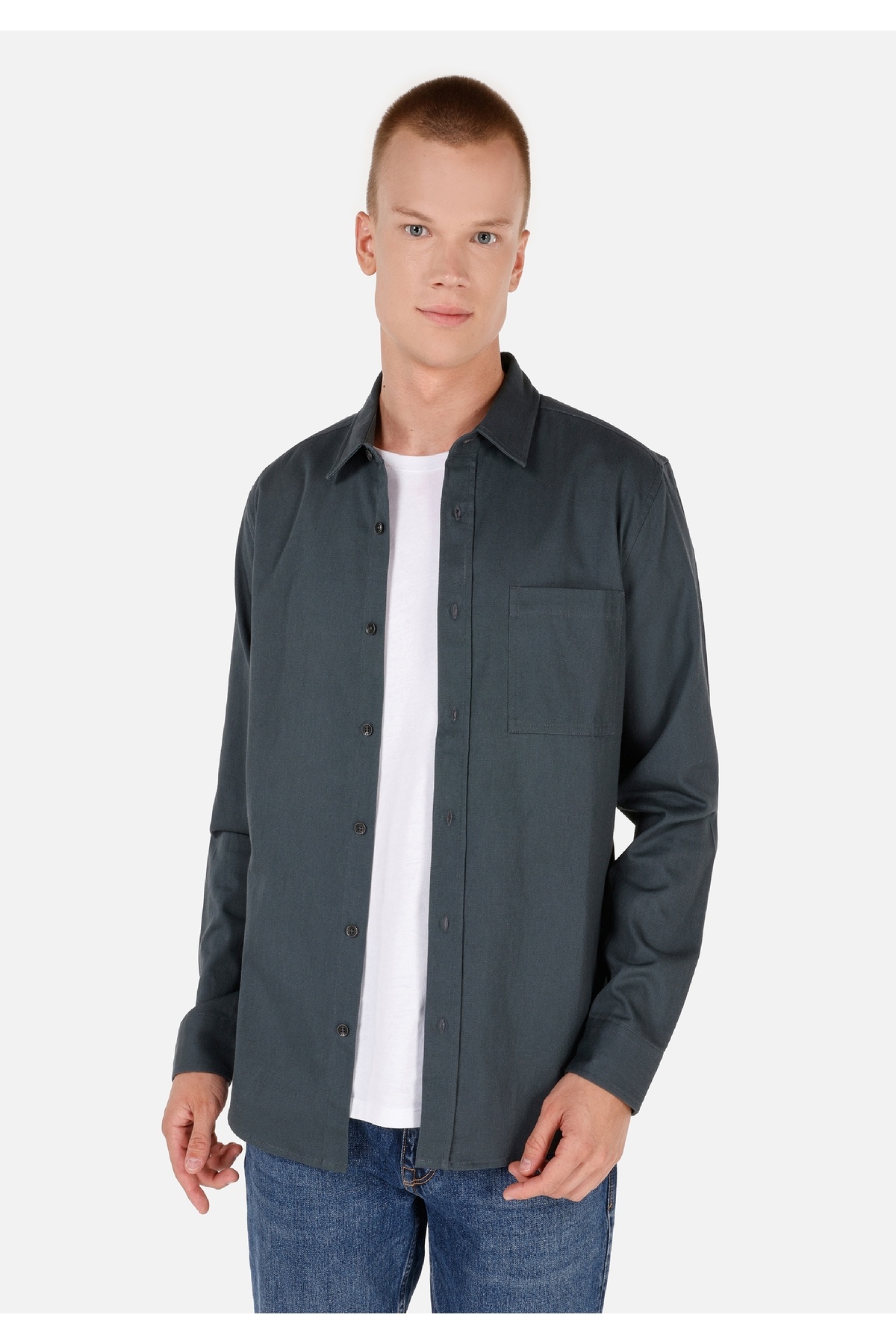 Slim Fit Shirt Neck Erkek Lacivert Uzun Kol Gömlek Slim Fit Shirt Neck Erkek Lacivert Uzun Kol Gömlek .CL1071394_Q1.V1_NAV 3XL